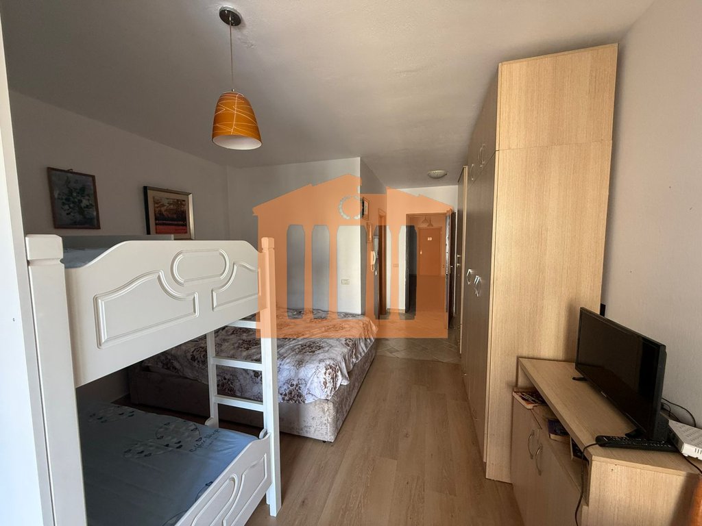 The studio is located on the 3rd floor of a new building without an elevator in Golem. It has 42.7m2 of interior space which is organized by one room, 1 bathroom and 1 balcony. The area in which it is located is a suitable area for holidays as it offers all the necessary facilities.
