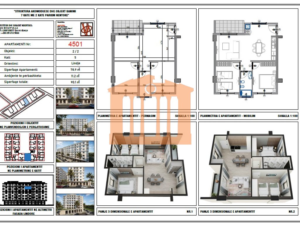 The apartment is located on the 5th floor of a new building with an elevator (still under construction) in the "Blue Horizont" Residence in Qerret. This apartment faces south and has a total area of 90.1 m2, of which 78.9 m2 is internal space organized into 1 living room with kitchen, 2 bedrooms, 1 bathroom, and a balcony. Built in 2025 with completion expected by the end of 2027. The area where this apartment is located offers all facilities and is suitable for both living and vacationing, and why not for investment as it has now become a highly sought-after and preferred area.