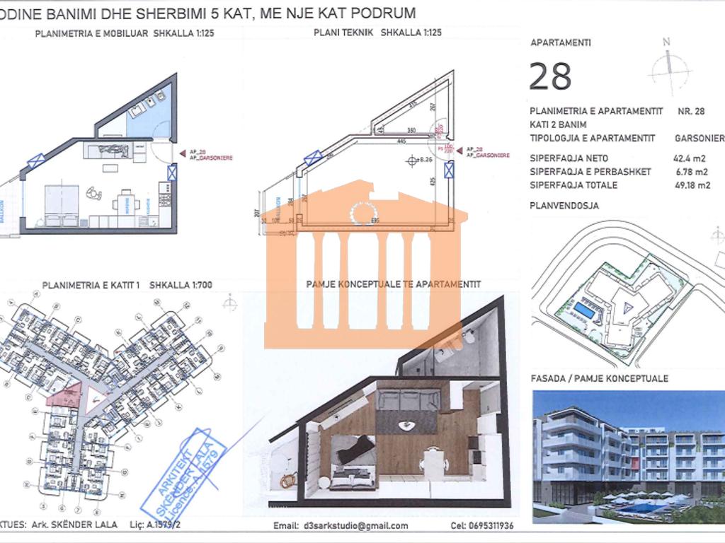 The studio apartment is located on the 2nd residential floor of a new building with an elevator (still under construction) in the "Viktori" Residence in Qerret. This apartment has a total area of 49.18m2, of which 42.4 m2 is indoor space organized into 1 open space, 1 bathroom, and a balcony. Built in 2025 with a completion deadline by the end of 2027. Payment in installments is offered for this property. The area where this apartment is located has all facilities and is suitable for living, vacationing, and even investment, as it has now become a highly demanded and preferred area. For more information or a property visit, please contact us!