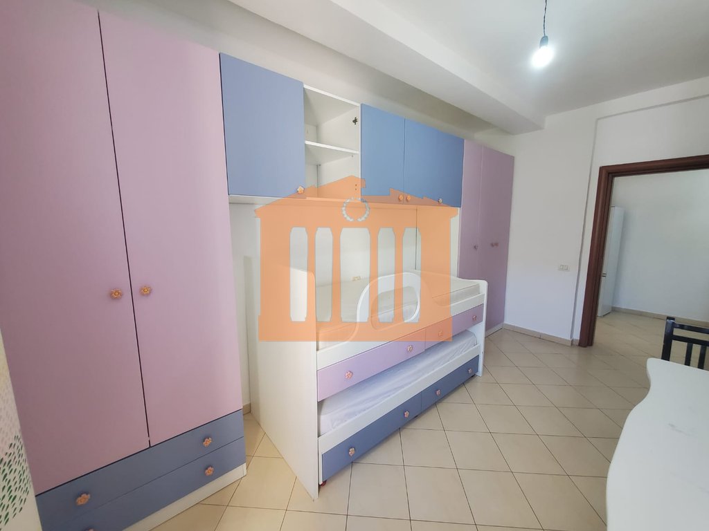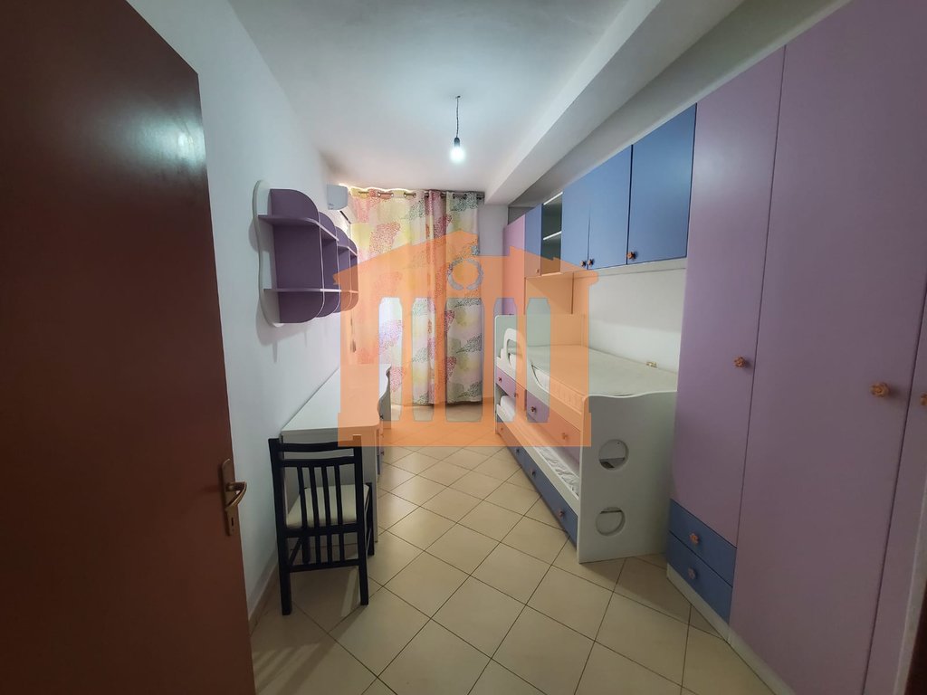 The apartment is located on the 5th floor of a building with an elevator in the Durres Beach area, near the Bajram Curri school. It is organized in a corridor that distributes the spaces into a living room + kitchen, 2 bedrooms, 1 bathroom with a window, and 2 balconies. The apartment is located in a preferred residential area where all services for a comfortable living are offered.