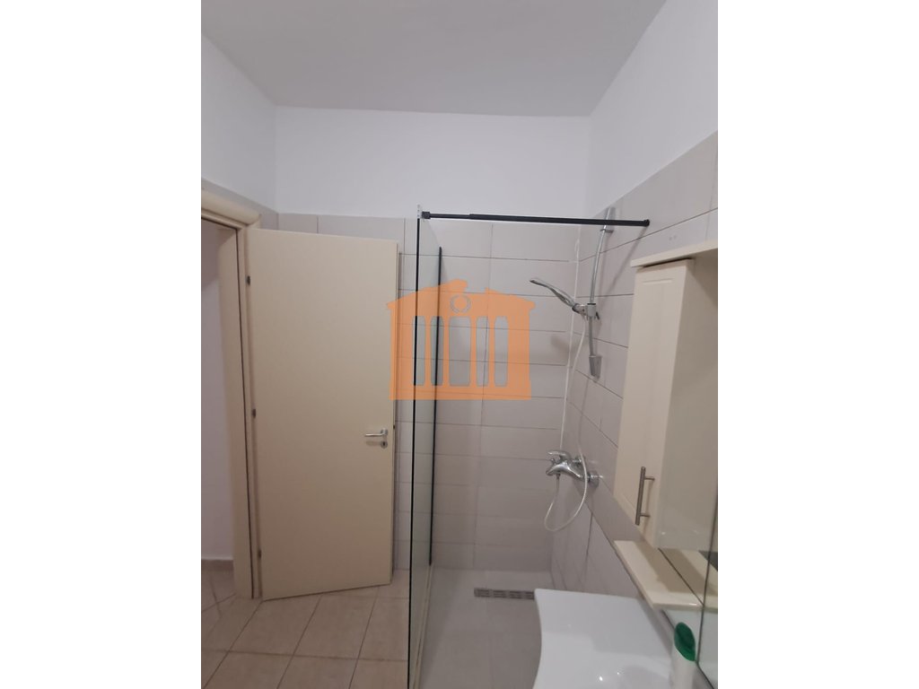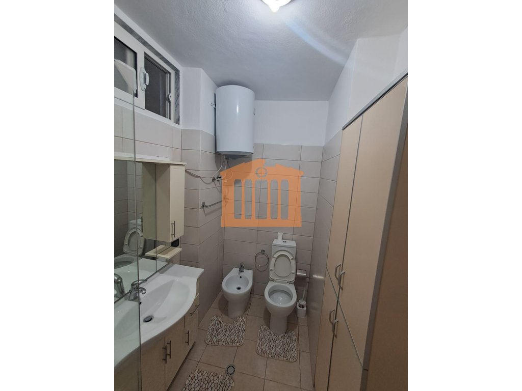 Apartamenti ndodhet ne katin e 4 banim me ashensor te nje pallati te rregullt ne qender te Durresit prane Gjykates. Organizohet nga nje korridor qe ben shperndarjen, 1 dhome ndenje se bashku me kuzhinen, 1 dhome gjumi, 1 tualet dhe 1 ballkon. Apartamenti eshte i mobiluar ne menyre komode dhe i pajisur me gjithcka gati per jetese. Preferohet te jepet me qira afatgjate dhe ndodhet prane shume fasiliteteve.