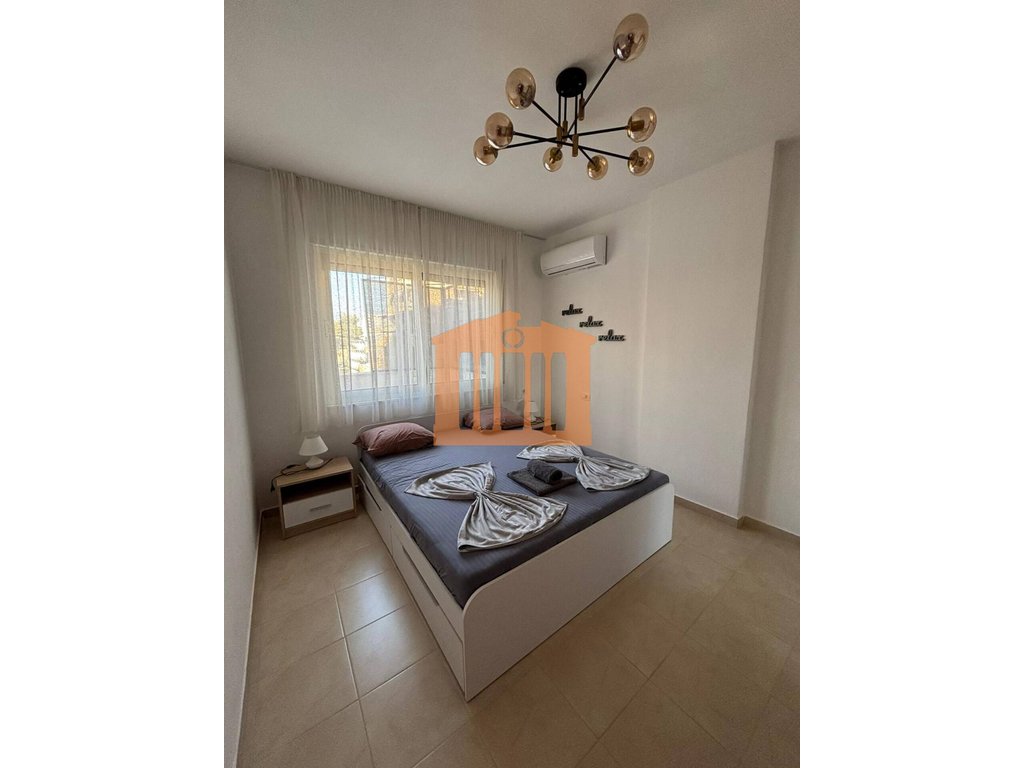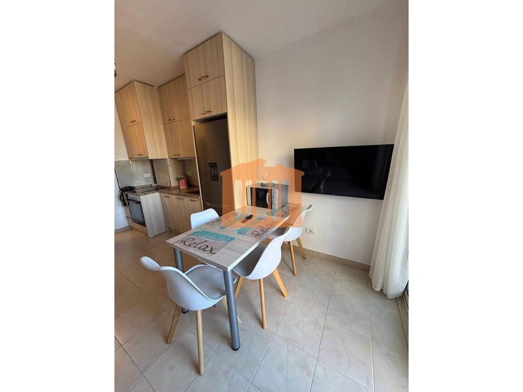 Apartamenti ndodhet në katin e 3-të të një ndërtese me ashensor në plazh. Apartamenti organizohet nga një korridor që ndan ambientet në një dhomë ndenjeje + kuzhinë, 1 dhomë gjumi, një tualet dhe një tarracë të madhe. Apartamenti është i mobiluar me kushte moderne dhe jepet me qira për 3, 6 ose 9 muaj.