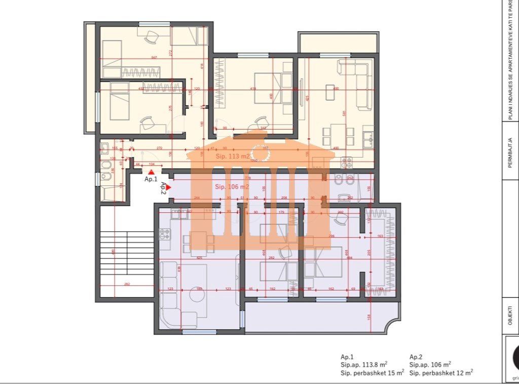 Apartamenti ndodhet ne katin e 2 te nje godine 3 kateshe. Apartamenti disponon 129 m2 totale dhe 113.8 m2 te brendshme te cilat organizohen ne nje korridor qe ben shperndarjen e ambienteve ne 1 dhome ndenje + kuzhine, 3 dhoma gjumi, 1 tualet dhe 1 ballkon. Ndertimi eshte ndertim i rregullt i vitit te fundit, me sistem kapot, me dritare dopio xham, dyert kane mundesi zgjedhje. Zona ku ndodhet apartamenti eshte nje zone e qete. Ne cmim perfshihet 1 magazine dhe 1 post parkimi. Prona disponon dokumentacion te rregullt hipotekor dhe eshte e gatshme per shitje.