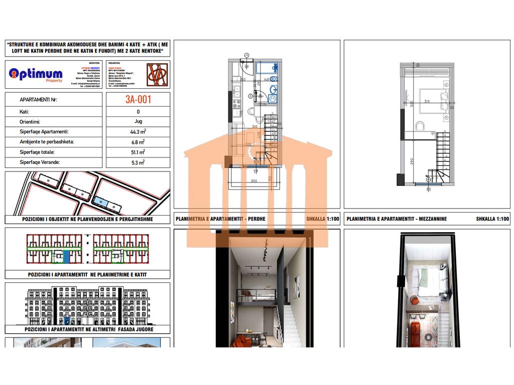 Dupleksi ndodhet ne katin eperdhe te nje pallati te ri me ashensor(ende ne proces ndertimi)ne Rezidencen "Adria" ne Qerret. Ky apartament ka orientim nga jugu dhe disponon 51.1 m2 siperfaqe totale nga te cilat 44.3 m2 jane siperfaqe e brendshme dhe 5.3 siperfaqe verande me cmim 600 euro m2 te cilat organizohen ne 1 dhome ndenje me kuzhine, 1 dhome gjumi, 1 tualet dhe nje ballkon. Ndertim i vitit 2025 dhe afati i perfundimit ne fund te 2027.