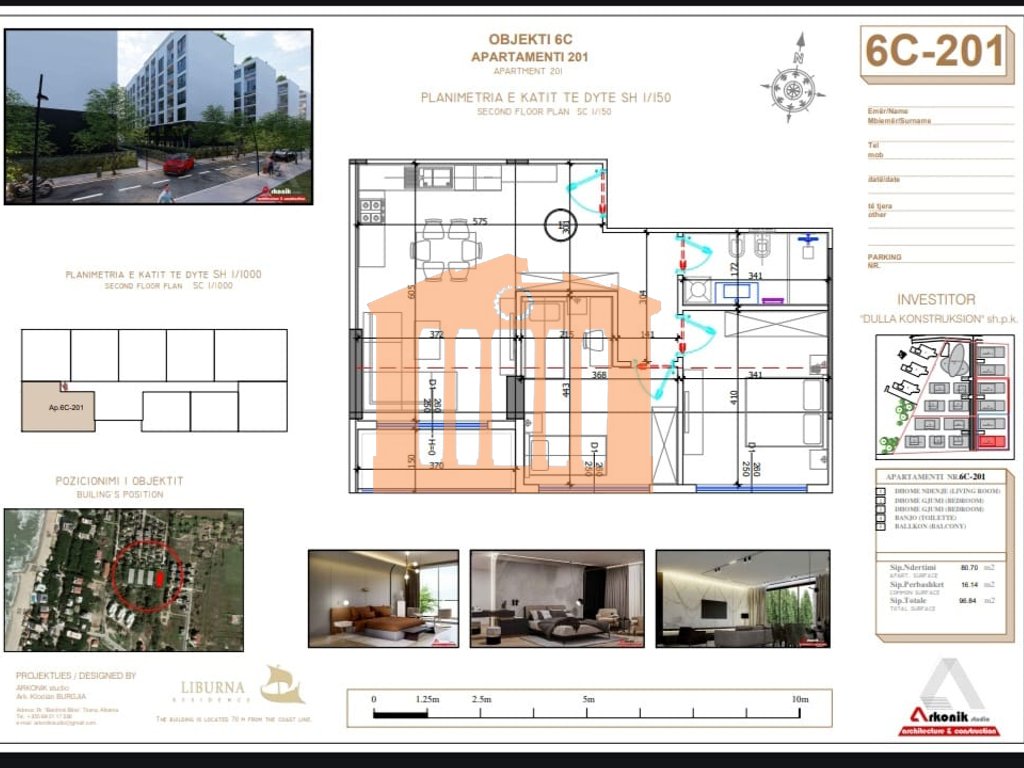 Aparatamenti ndodhet ne katin e 2 te nje pallati te ri pjese e Rezidences "Liburna"ne Golem. Apartamenti disponon 96,54 m2 siperfaqe totale ku nga keto 80,4 m2 jane siperfaqe e brendshme te cilat organizohen ne 1 dhome ndenje me kuzhine , 2 dhoma gjumi, 1 tualet dhe nje ballkon. Liburna Residence ndodhet ne zonen e Golemit ne Rrugen Bulevardi i Pishave, vetem 70 m larg nga deti. Me nje cilesi absolute ndertimi, standart i certifikuar i materialeve te perdorura, hapesirave rekreative, ambiente relaksuese,ambiente biznesi e hapesire parkimi nentoke per cdo njesi banimi ku ne fokus jane nevojat e banoreve per nje jetese komode.