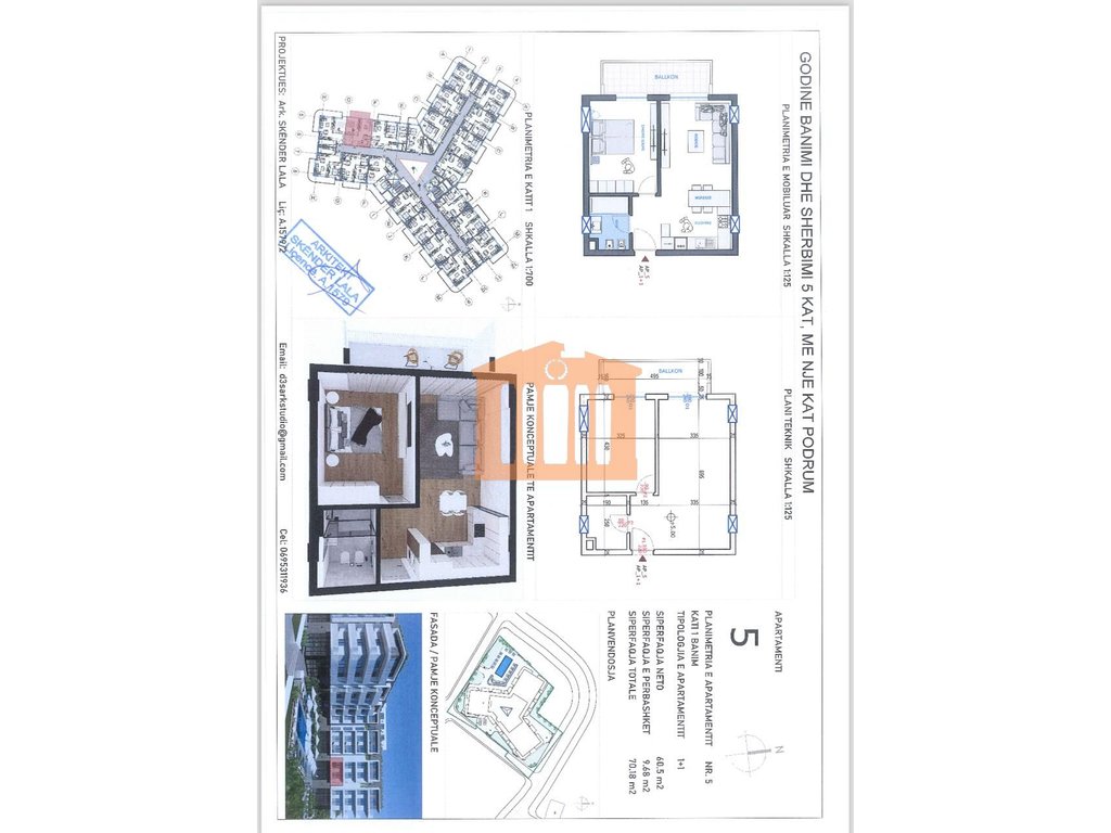 Apartamenti ndodhet ne katin e 1 banim te nje pallati te ri me ashensor(ende ne proces ndertimi) ne Rezidencen "Viktori" ne Qerret. Ky apartament disponon 70.18m2 siperfaqe totale nga te cilat 60.5m2 jane siperfaqe e brendshme te cilat organizohen ne 1 dhome ndenje + kuzhine, 1 dhome gjumi, 1 tualet dhe nje ballkon. Ndertim i vitit 2025 dhe afati i perfundimit nr fund te 2027.