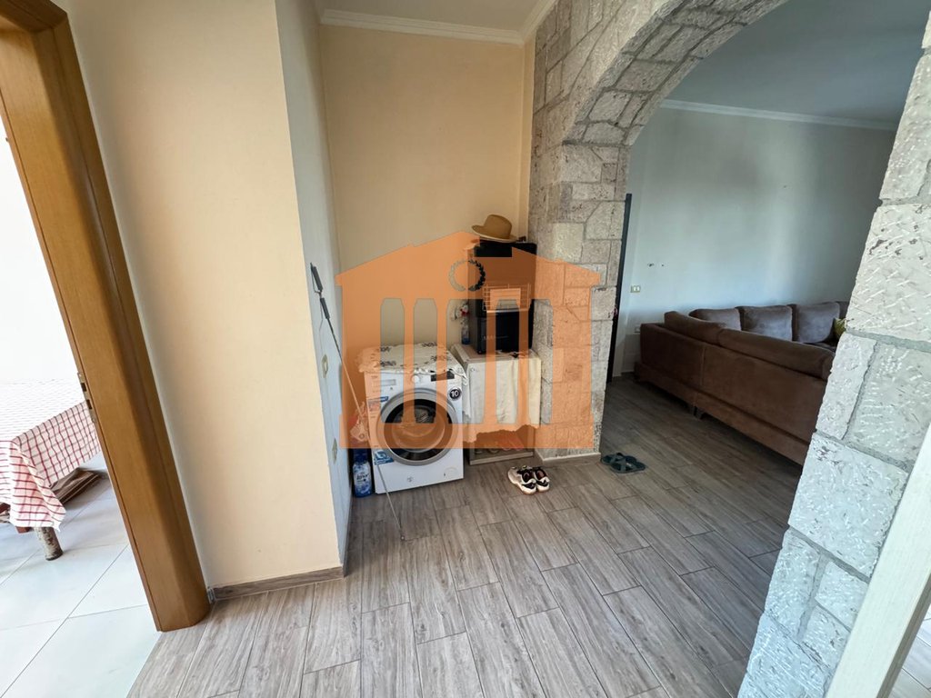Apartamenti ndodhet ne katin e 2 te nje godine 3 kateshe prane zones se plazhit . Organizohet nga 1 korridor qe ben shperndarjen e ambienteve ne 1 dhome ndenje + kuzhine , 2 dhoma gjumi , 1 ballkon dhe 2 tualete . do te mobilohet plotesisht ne varesi te kushteve qe klienti qiramarres deshiron . Ndodhet ne nje zone teper te qete dhe te pershtatshme per banim larg zhurmave te makinave dhe rremujes se qytetit . Eshte e mobiluar ne kushte bashkekohore dhe preferohet te jepet me qira afatgjate .