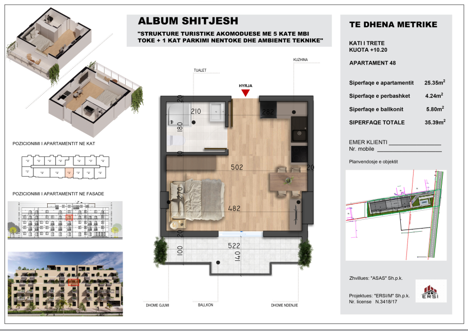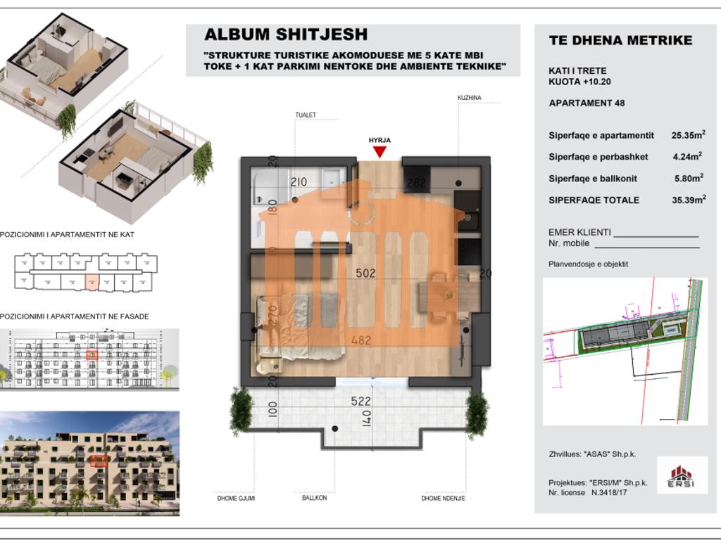 Garsonieria ndodhet ne katin e 3-te te nje ndertese ne faze ndertimi ne Golem, prane Meteor. Disponon 35.39m2 totale dhe 25.35m2 te brendshme.Organizohet ne nje open space, nje tualet dhe nje ballkon.Ndertimi eshte i vitit 2025 dhe pritet te perfundoje pas 18 muajsh.Ofrohet dhe mundesi e pageses me keste 30%, 30%, 30%, cdo 6 muaj dhe 10% ne marrjen e celesave te apartamentit.Cmimi per m2 me keste eshte 1200 euro. Ne rast se pagesa behet e plote atehere cmimi per m2 eshte 1050 euro. Me nje me planimetri me jo shume metra dhe nje lokacion shume te favorshem ben qe kjo rezidence te jete shume e pelqyer per banim, pushime apo investim.