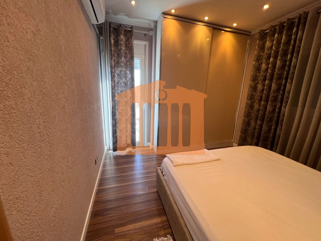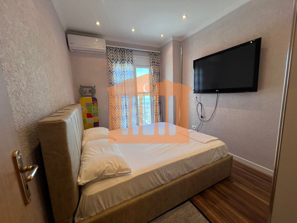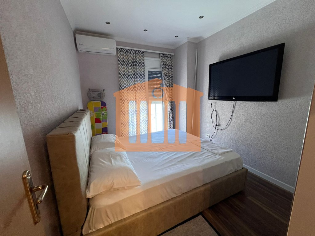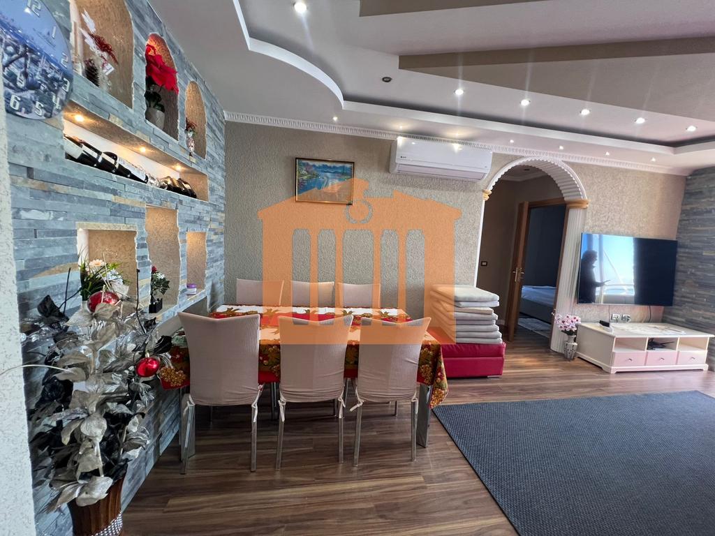 Apartamenti ndodhet ne katin e 3-te te nje pallati te me ashensor ne zonen e Plazhit, afer Pista Teuta, vije e pare me pamje ballore deti. Organizohet nga 1 korridor i cili ben shperndarjen e apartamentit ne 1 dhome ndenje+kuzhine, 3 dhoma gjumi, 2 tualete dhe 1 ballkoni me pamje deti. Apartamenti eshte i mobiluar dhe jepet me qira afatgjate. Ndodhet ne nje zone teper te mire pasi ofron te gjitha fasilitetet e nevojshme si per pushime po ashtu edhe per nje jetese sa me komode.