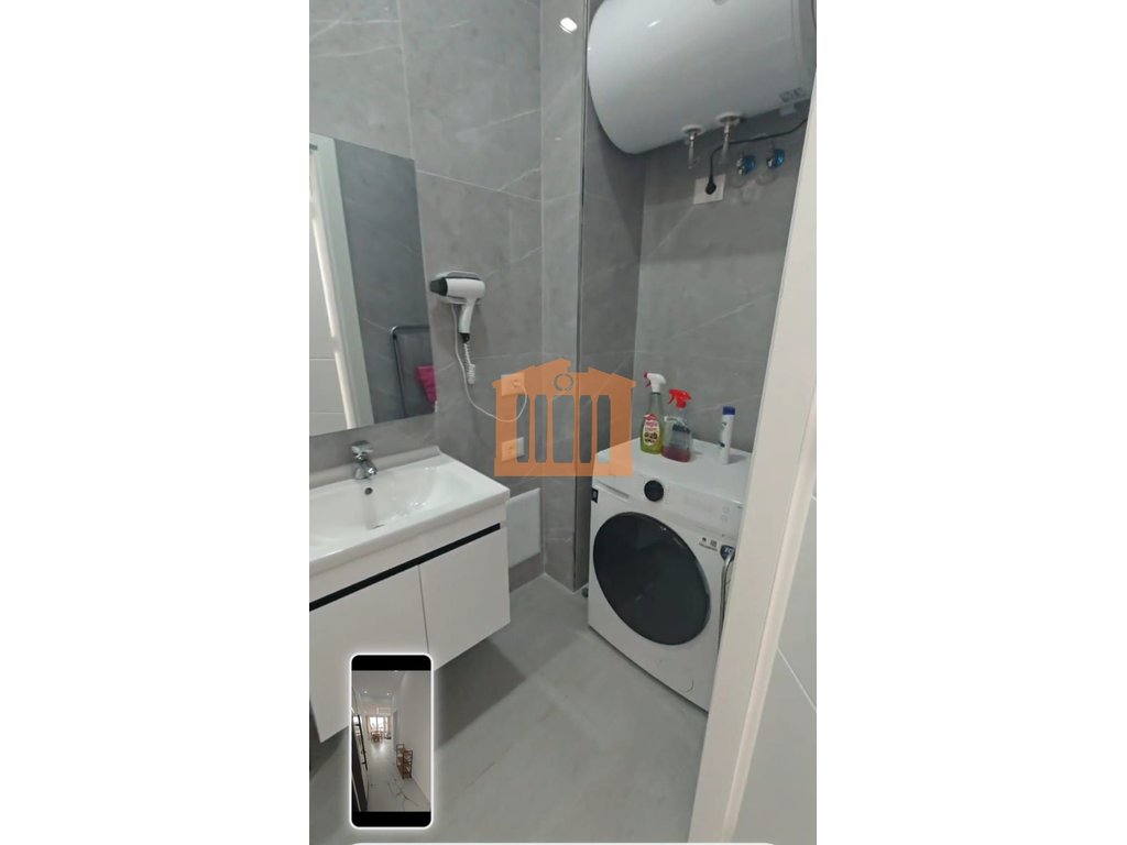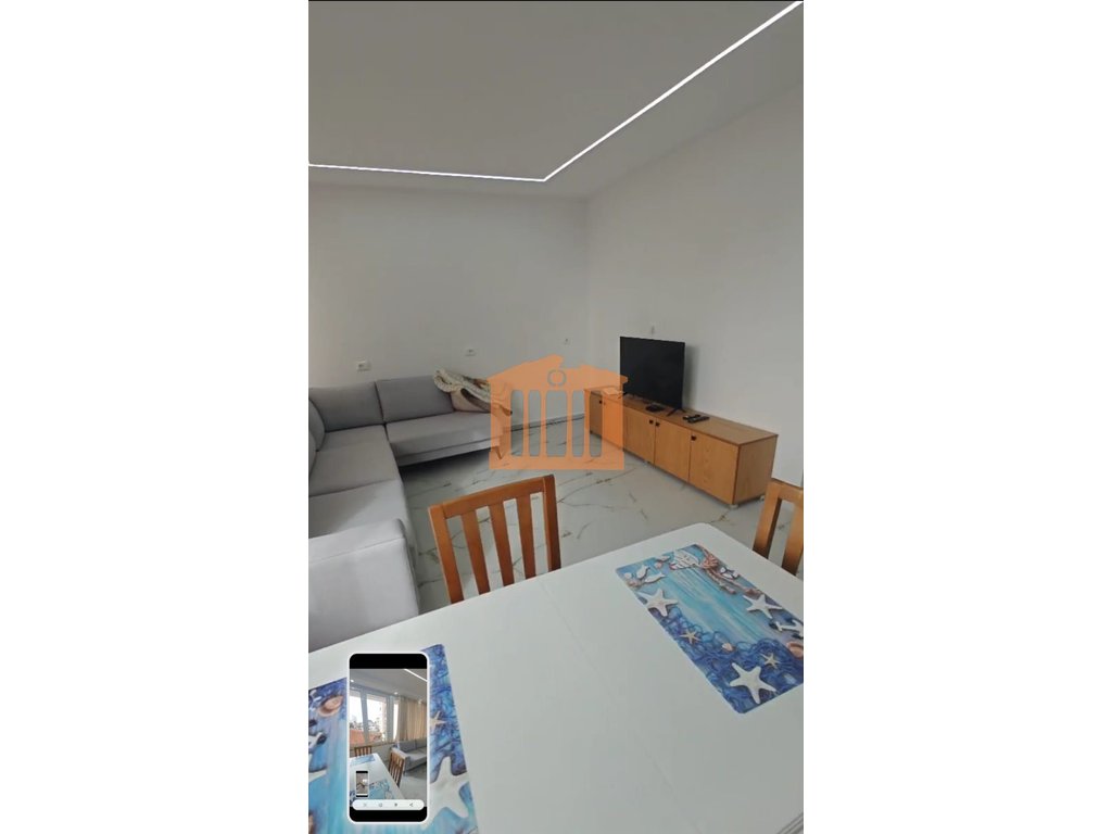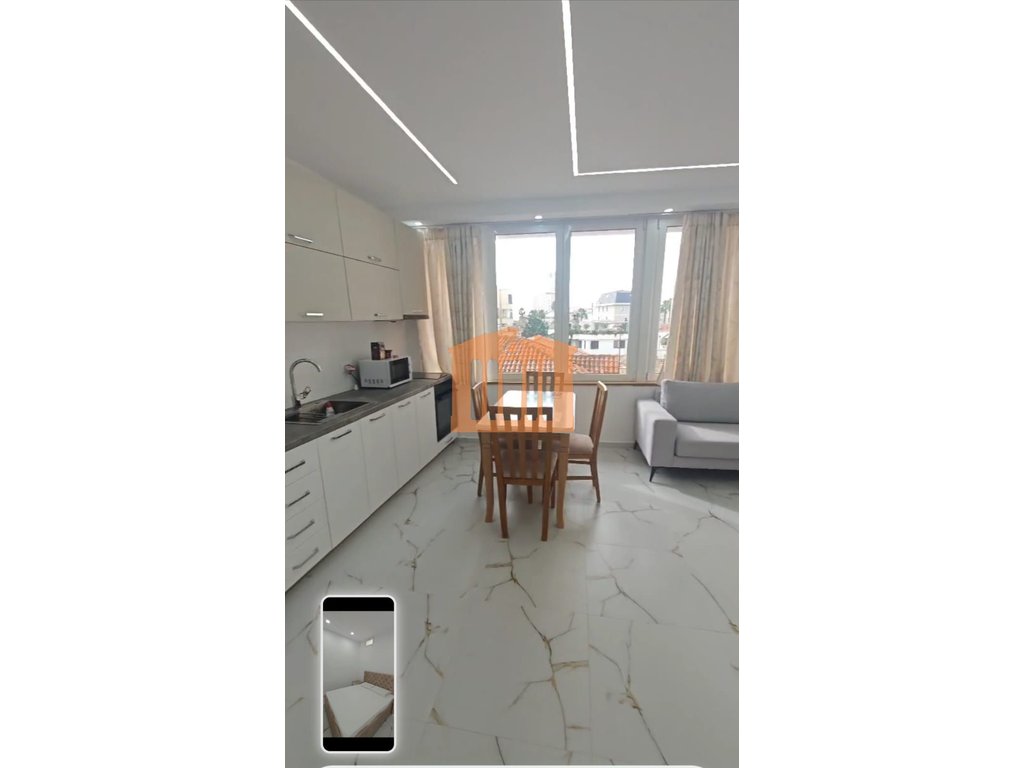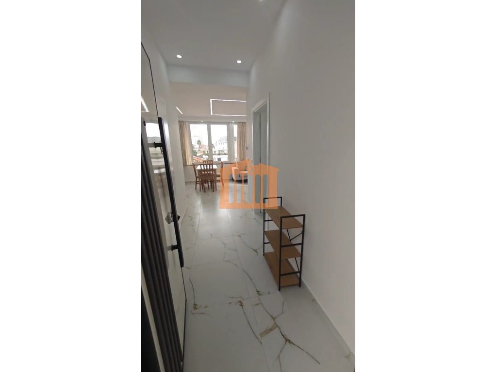 Apartamenti ndodhet ne katin e katert te nje pallati pa ashensor me vendndodhje prane Bashkise se qytetit. Prona ka nje siperfaqe prej 40 m2 te cilat organizohen nga nje korridor qe lidh dhomen e ndenjies dhe kendin e gatimit me dhomen e gjumit dhe tualetin. Apartamenti eshte rikontruktuar totalisht dhe pajisur me gjithcka te re perfshire dyer, dritare dhe mobilim. Per vendndodhjen e favorshme kjo prone eshte nje mundesi e mire investimi, pasi ajo mund te jepet me qira dhe perdoret per aktivitet ekonomik. Apartamenti karakterizohet nga drita gjate gjithe dites, gje qe e ben te mundur orientimi dhe vetratat e gjera te sallonit.