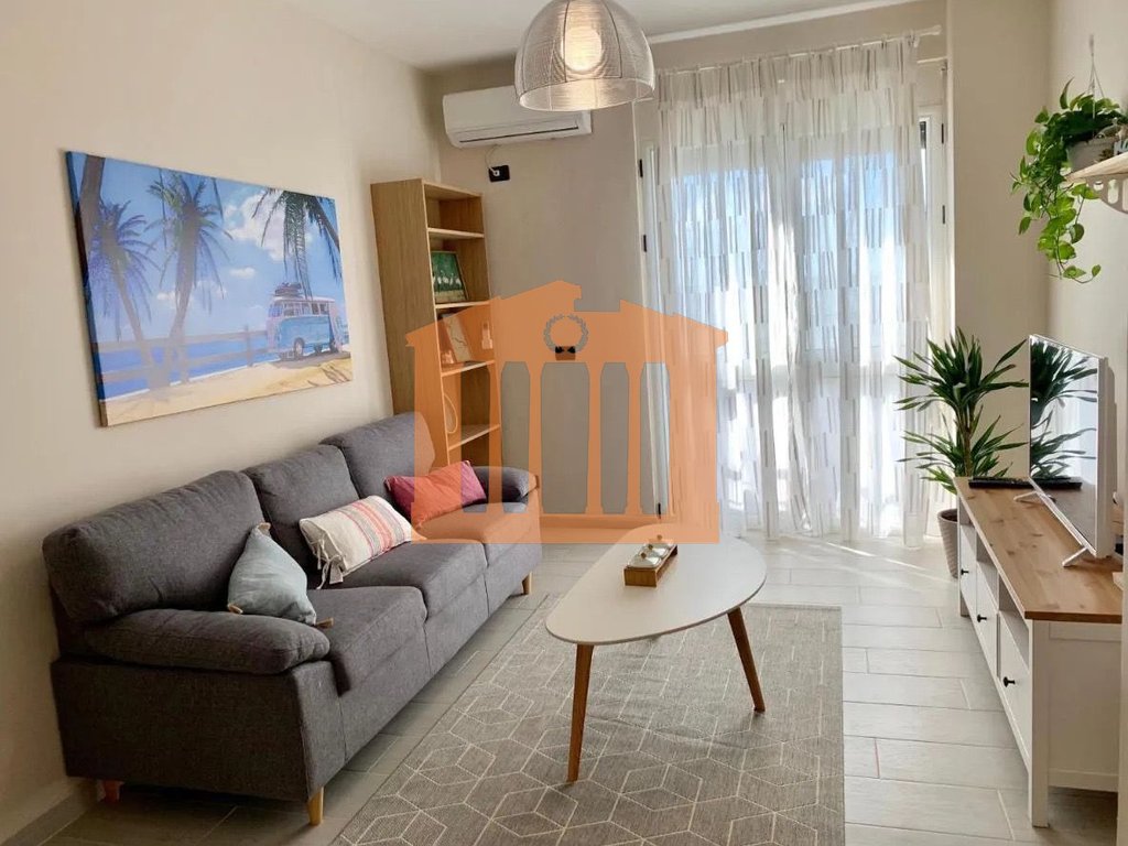 Apartamenti ndodhet ne katin e 4 te nje ndertese pa ashensor ne vijen e pare te Shkembi i Kavajes. Disponon 55m2 ne certifikate dhe perbehet nga nje dhome ndenje, kuzhine me vete, nje dhome gjumi , nje tualet si dhe nje ballkon me pamje ballore nga deti. Apartamenti eshte i mobiluar dhe ka te gjitha pajisjet e nevojshme elektroshtepiake. Ka prane te gjitha fasilitet e nevojshme per nje jetese sa me te mire dhe komode, por gjithashtu dhe eshte nje mundesi e mire investmi per booking ose Airbnb. Disponon dokumentacion te rregullt hipotekor dhe eshte i gatshem per shitje.