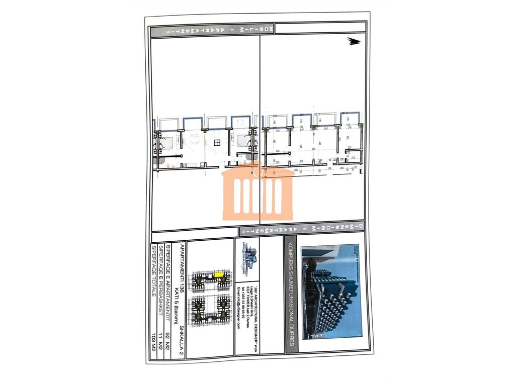 Apartamenti eshte i pozicionuar ne katin e 5-te banim te nje pallati te ri ne ndertim, tek ish-Parku Sportiv, Durres.Apartamenti disponon 92m2siperfaqe te brendshme dhe 103m2 siperfaqe totale. Organizohet ne 1 korridor qe ben shpendarjen e ambientit ne 1 dhome ndenje+kuzhine, 2 dhoma gjumi, 2 tualete dhe 2 ballkone. Apartamenti do te jete i perfunduar gati per mobilim. Zona ne te cilen ndodhet apartamenti ofron te gjitha kushtet per nje jetese sa me te mire duke te krijuar shume fasibilitete si supermarket, shkolle, transport publik, etj.