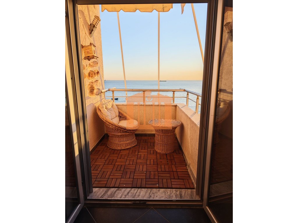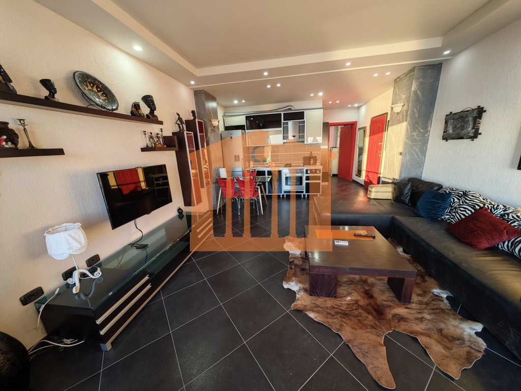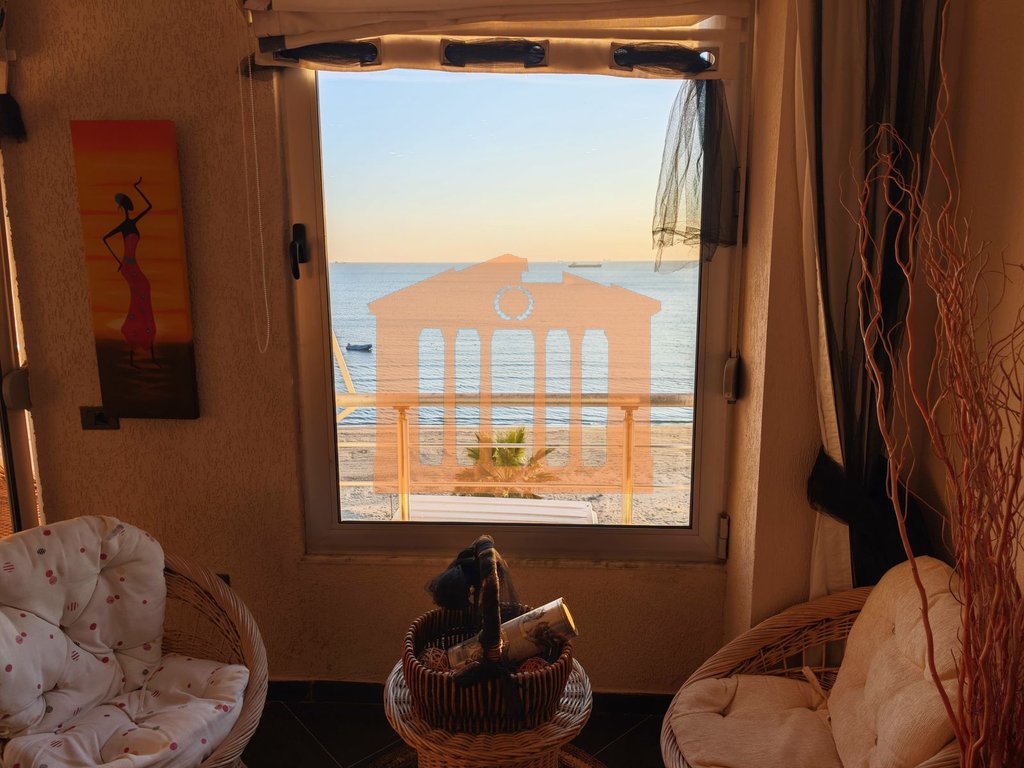 Apartamenti ndodhet ne katin e 4-te te nje pallati pa ashensor ne zonen e Plazhit, afer Villa One, vije e pare me pamje ballore ngadeti. Organizohet nga 1 korridor i cili ben shperndarjen e apartamentit ne 1 dhome ndenje+kuzhine, 1 dhome gjumi, 1 tualet dhe 1 ballkoni me pamje deti. Apartamenti eshte i mobiluar dhe jepet me qira afatgjate.Mund te lejohen kafshe te vogla shtepiake. Ndodhet ne nje zone teper te mire pasi ofron te gjitha fasilitetet e nevojshme si per pushime po ashtu edhe per nje jetese sa me komode.