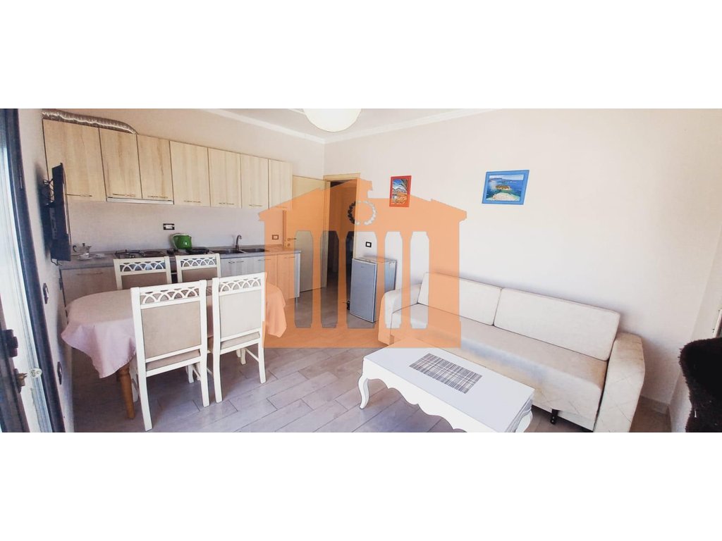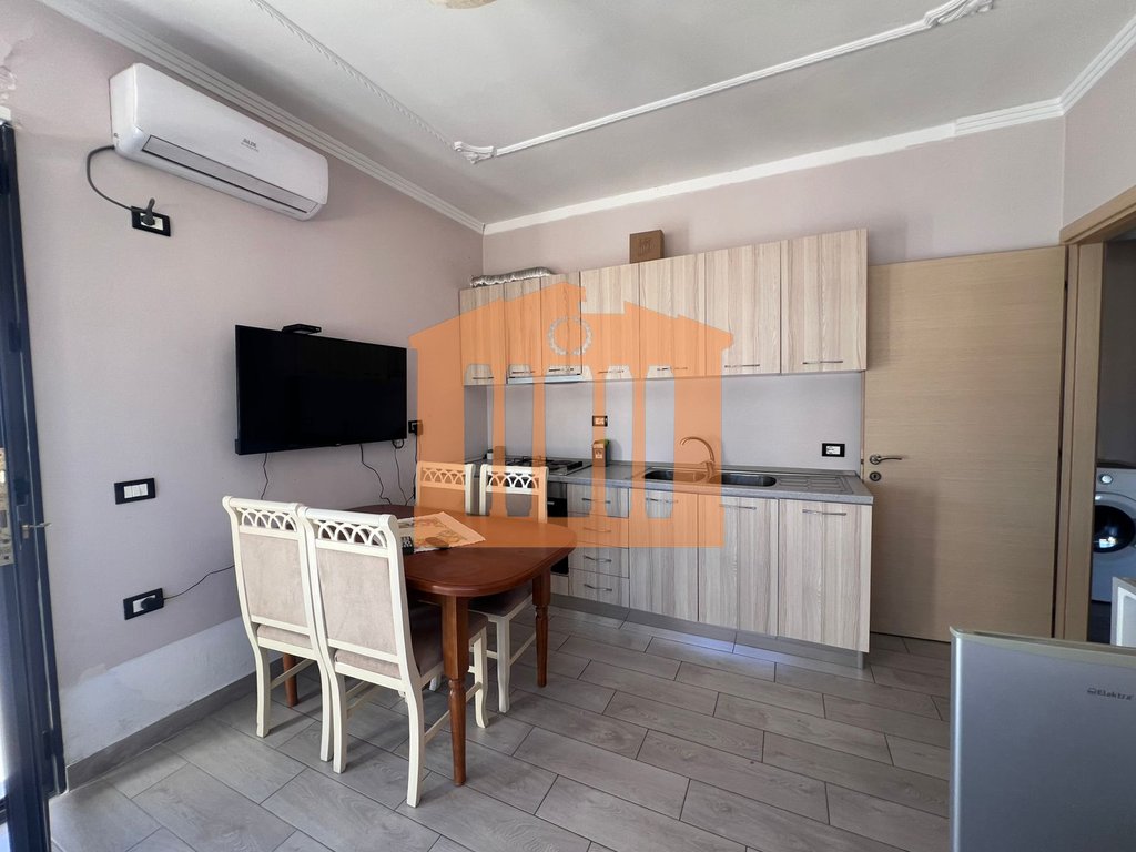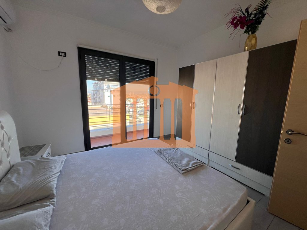Apartamenti ndodhet ne katin e 6-te te nje pallati me ashensor prane Bar Milano, ne Plazh. Organizohet ne nje korridor qe ben shperndarjen e ambienteve ne nje dhome ndenjeje + kuzhine, nje dhome gjumi, nje tualet dhe nje verande me pamje nga deti.Ky apartament eshte totalisht i investuar dhe me mobilje te reja. Pagesa e dritave, ujit dhe administrimit perfshihet ne cmim.Jepet me qira 3 - 6 mujore. Ndodhet ne nje zone te rehatshme dhe shume te preferuar per banim pasi eshte shume prane detit dhe prane shume fasiliteteve.