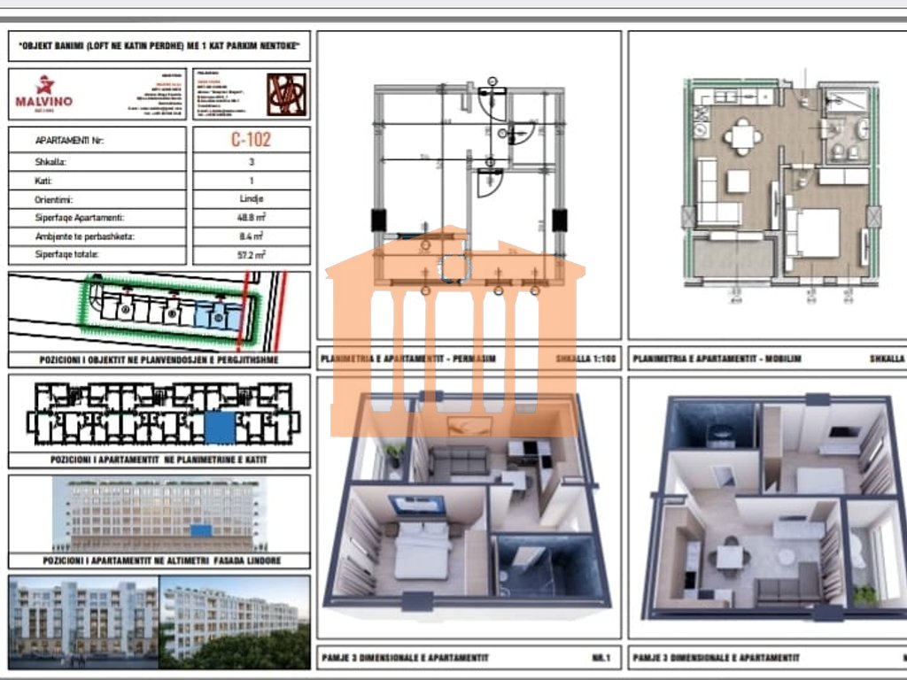 Apartamenti ndodhet ne nje nga residencat me te reja qe po ndertohet ne qender te Golemit. Apartamenti ndodhet ne katin e pare te banimit me orientim Lindje dhe disponon 57.2m totale dhe 48.8m te brendshme te cilat organizohen ne nje dhome ndenje+kuzhine, 1 dhome gjumi, 1 tualet dhe 1 ballkon. Ne kete objekt disponojme opsione te ngjashme ne kate dhe orientime te ndryshme."Rezidenca La Mer" eshte rezidenca me e re qe do i shtohet Golemit me nje distance nga deti per vetem 300 metra dhe me 6 kate mbi toke dhe 1 kat -1, residence e cila pritet te perfundoje brenda 18 muajve dhe te jete gati ne veren e vitit 2027. Objekti eshte i ndare ne 3 seksione, secili seksion ka ashensorin e tij dhe 5 apartamente ne kat. Ne kete rezidence cmimi eshte 1300 euro/m dhe ofrohet menyra e pageses me keste si me poshte: