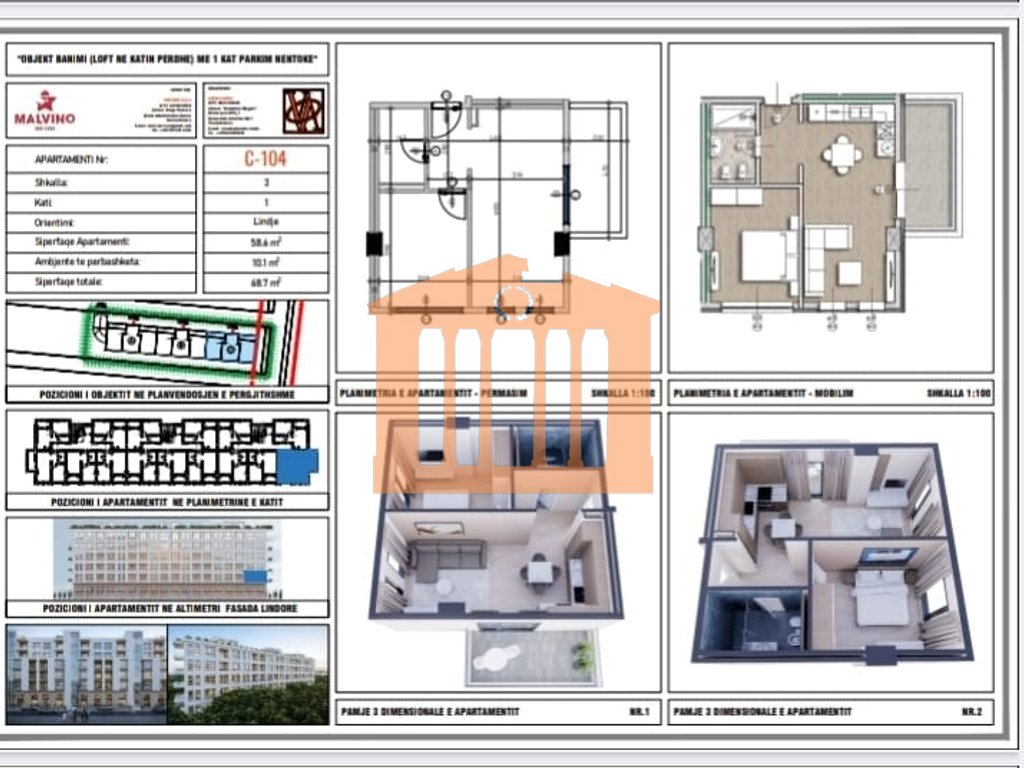 Apartamenti ndodhet ne nje nga residencat me te reja qe po ndertohet ne qender te Golemit.Apartamenti ndodhet ne katin e pare te banimit me orientim Lindje dhe disponon 68.7m totale dhe 58.6 m te brendshme te cilat organizohen ne nje dhome ndenje+kuzhine, 1 dhome gjumi, 1 tualet dhe 1 ballkon. Ne kete objekt disponojme opsione te ngjashme ne kate dhe orientime te ndryshme."Rezidenca La Mer" eshte rezidenca me e re qe do i shtohet Golemit me nje distance nga deti per vetem 300 metra dhe me 6 kate mbi toke dhe 1 kat -1, residence e cila pritet te perfundoje brenda 18 muajve dhe te jete gati ne veren e vitit 2027. Objekti eshte i ndare ne 3 seksione, secili seksion ka ashensorin e tij dhe 5 apartamente ne kat.Ne kete rezidence cmimi eshte 1300 euro/m dhe ofrohet menyra e pageses me keste si me poshte: