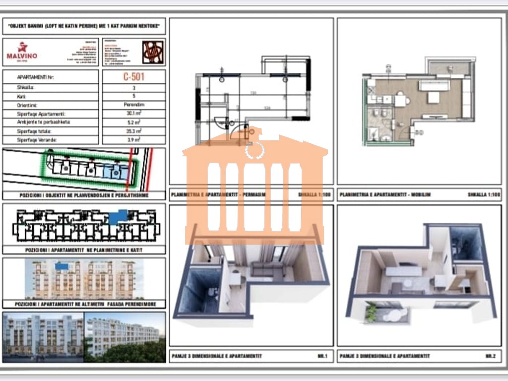 Garsonieria ndodhet ne nje nga residencat me te reja qe po ndertohet ne qender te Golemit.Apartamenti ndodhet ne katin e 5-te te banimit me orientim Perendim dhe disponon 39.2m totale nder te cilat 3.9m eshte siperfaqa e verandes, 5.2m eshte siperfaqe e perbashket dhe 30.1m eshte siperfaqja e brendshme qe organizohet ne open-space dhe nje tualet. Ne kete objekt disponojme opsione te ngjashme ne kate dhe orientime te ndryshme. "Rezidenca La Mer" eshte rezidenca me e re qe do i shtohet Golemit me nje distance nga deti per vetem 300 metra dhe me 6 kate mbi toke dhe 1 kat -1, residence e cila pritet te perfundoje brenda 18 muajve dhe te jete gati ne veren e vitit 2027. Objekti eshte i ndare ne 3 seksione, secili seksion ka ashensorin e tij dhe 5 apartamente ne kat.Ne kete rezidence cmimi eshte 1300 euro/m dhe ofrohet menyra e pageses me keste si me poshte: