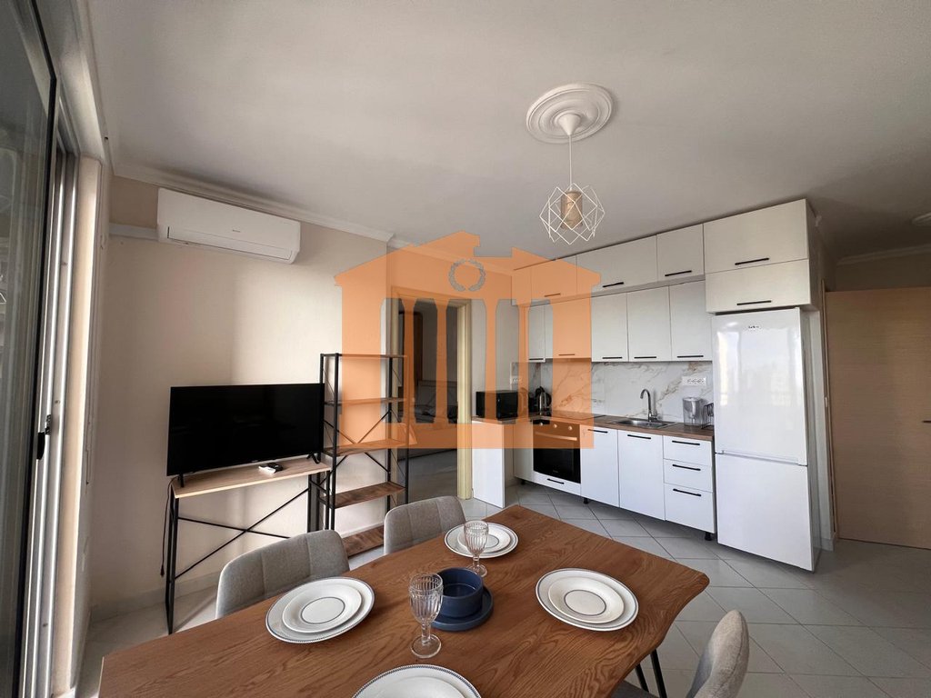 Apartamenti ndodhet ne katin e 6-te te nje pallati me ashensor tek Shkembi i Kavajes. Disponon 72m2 totale dhe 58.7m2 te brendshme te cilat organizohen ne nje korridor qe ben shperndarjen e ambienteve ne nje dhome ndenje + kuzhine, 1 dhome gjumi,1 tualet dhe 1 ballkon. Zona ku ndodhet apartamenti eshte nje zone e preferuar per banim dhe per pushime ku ofron te gjitha facilitetet per nje jetese sa me komode. Apartamenti eshte totalisht i mobiluar me kushte bashkohore dhe shitet sic eshte ne foto. Prona disponon dokumentacion te rregullt hipotekor dhe eshte e gatshme per shitje.