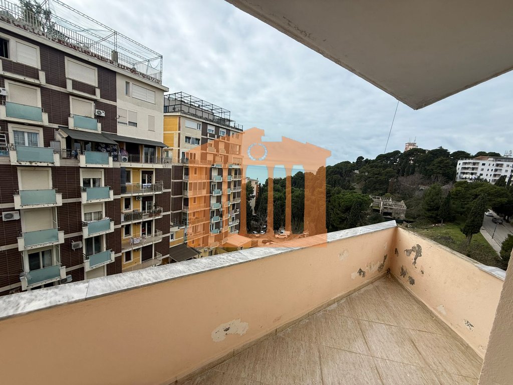 Apartamenti ndodhet në katin e 7-të me ashensor dhe pamje nga deti në zonën e Viles se Zogut. Sipërfaqja totale e pronës është 105 m2 dhe përfshin një sallon të madh me kuzhinë, dy dhoma gjumi, korridor,1 tualet, 3 ballkone . Apartamenti mund te mobilohet plotësisht dhe te jete gati për banim. Jepet me qira afatgjatë me çmim 80'000 lek në muaj.