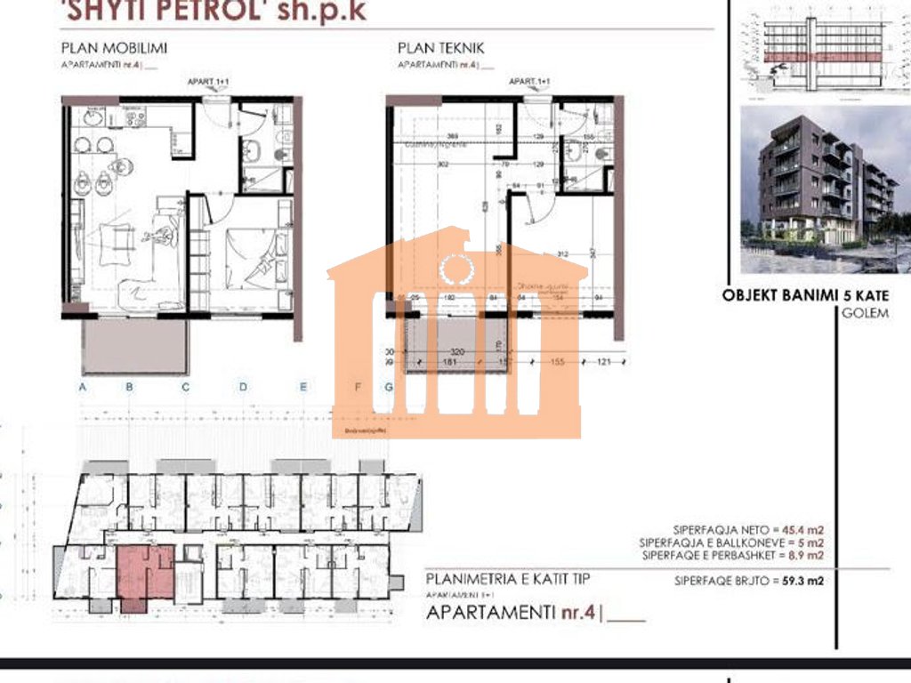 Apartamenti ndodhet ne katin e pare banim te nje godine e cila eshte duke u ndertuar ne Mal Te Robit. Apartementi disponon 59.3 m2 siperfaqe totale, nder te cilat 45.4 m2 jane siperfaqe e brendshme,te cilat organizohen ne 1 dhome ndenje + kuzhine, 1 dhome gjumi,1 tualet,1 ballkon me siperfaqe 5 m2 gjithashtu dhe 8.9 m2 siperfaqe e perbashket. Rezidenca eshte nje nder rezidencat me te reja qe do vije ne treg me nje cilesi maksimale punimesh.Duke punuar me kapacitet te plote pritet qe kjo rezidence te mbaroje ne Korrik te vitit 2026 ose ndoshta edhe me shpejte . Me nje lokacion teper te favorshem 400 metra larg detit dhe shume prane fasiliteteve te ndryshme e ben kete Rezidence jo vetem per te kaluar pushimet gjithashtu edhe per te jetuar gjate gjithe vitit por mund te jete dhe nje ide shume e mire biznesi per ata qe deshirojne te investojne.