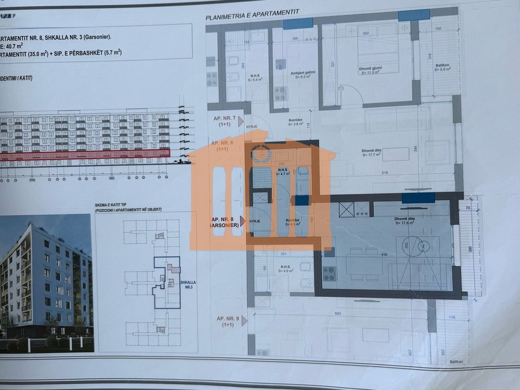 Garsonieria ndodhet ne katin e pare banim te nje pallati ende ne proces ndertimi ne Golem. Disponon 35m² te brendshme , 40.7 m² totale te cilat organizohen ne1 dhome ,1 tualet dhe 1 ballkon.