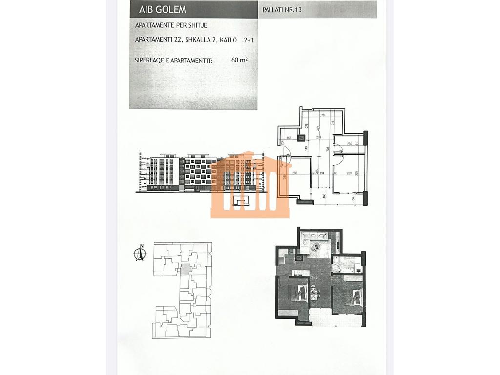 Apartamenti ndodhet ne katin e perdhe te nje pallati te ri me ashensor (ende ne proces ndertimi) te nje rezidence prane detit ne Golem. Prona disponon siperfaqe totale 60 m2, e cila eshte e organizuar ne nje dhome ndenjeje se bashku me kuzhinen, 2 dhoma gjumi, nje tualet dhe nje ballkon. Afati i perfundimit eshte para veres 2026. Zona ne te cilen ndodhet ky apartament eshte nje zone e cila disponon te gjitha fasilitetet dhe eshte e pershtatshme si per banim ashtu edhe per pushime pse jo edhe per investim pasi Golemi tashme eshte shnderruar ne nje zone shume te kerkuar dhe te preferuar nga te gjithe, dhe afersia e saj me detin ja shton vlerat kesaj prone dhe shitet me nje cmim total prej 66.000 euro.