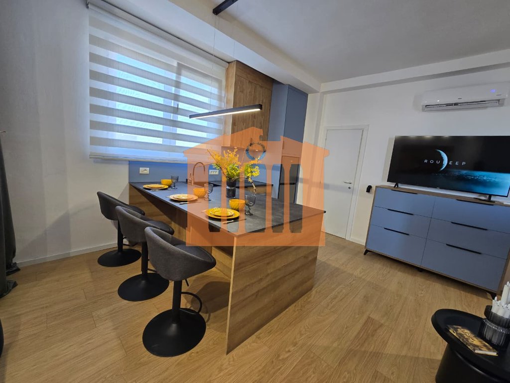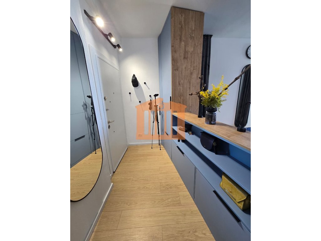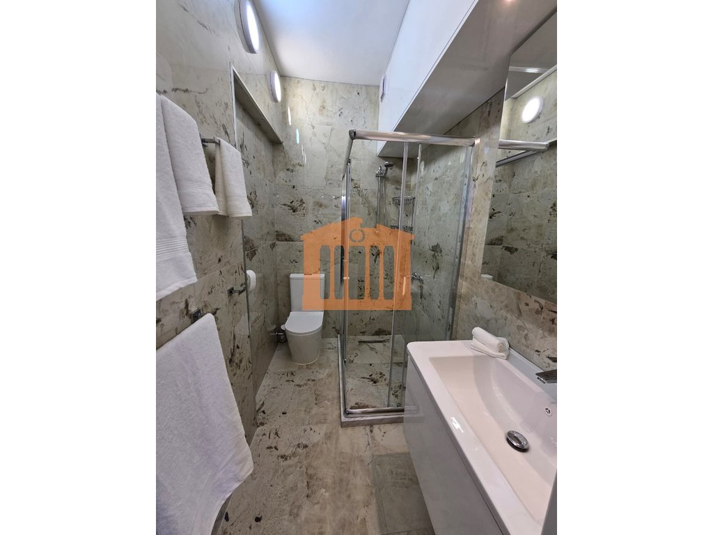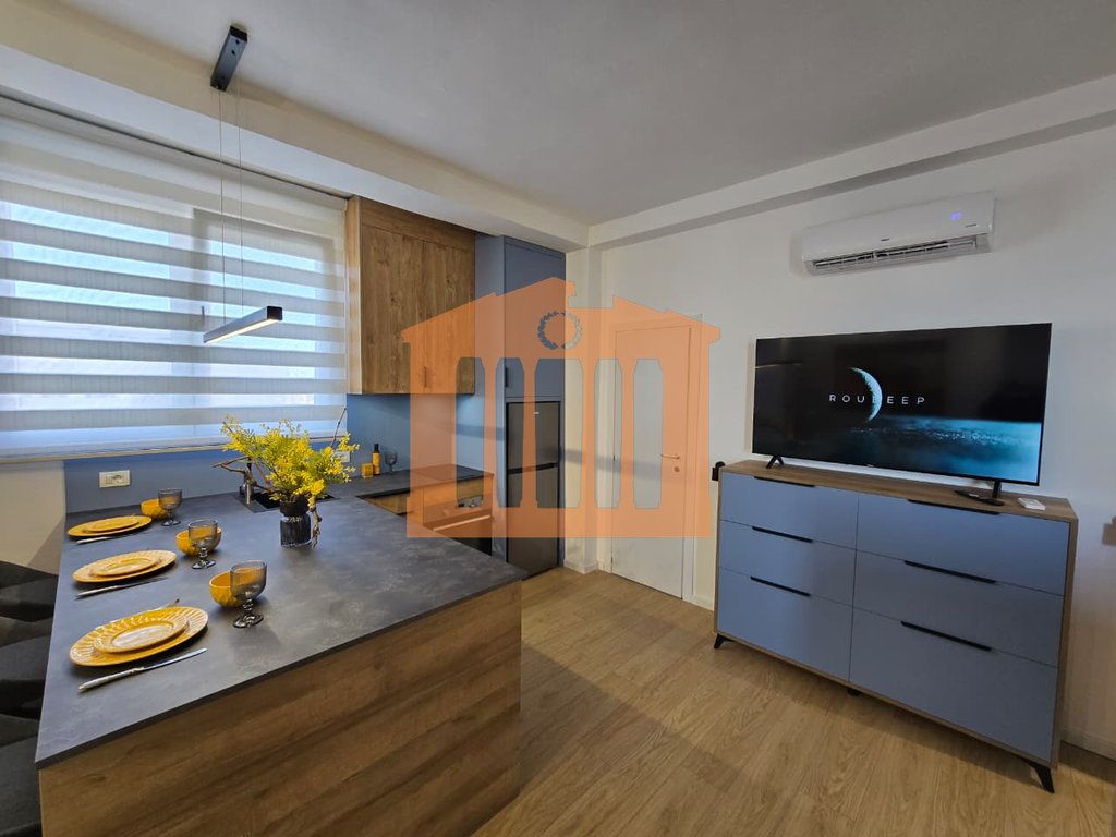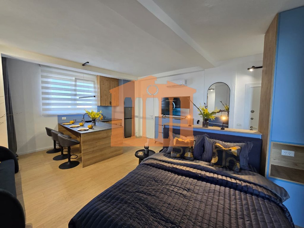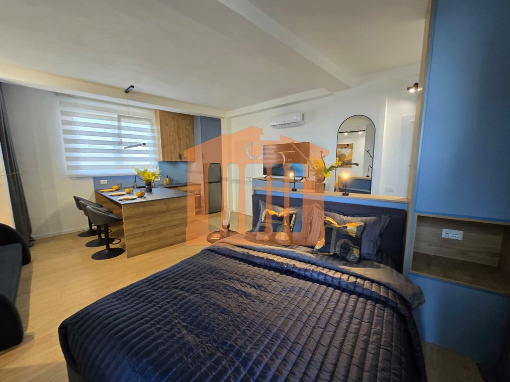 Garsonieria ndodhet ne katin e 9-te te nje pallati te ri me ashensor dhe administrim te rregullt gjate gjithe vitit. Disponon 47m totale dhe 40m te brendshme te cilat organizohen ne open-space dhe 1 tualet. Arredimi eshte bere deri ne detaje dhe kushte bashkohore e cilesore ku eshte shfrytezuar 100% hapesira e saj, duke nisur qe nga punimet elektrike & hidrualike, tualeti totalisht i ri dhe me sistem ngrohes per pllakat per ta bere sa me te ngrohte gjate dimrit, shtrimi me parket, mobilimi dhe kombinimi i ngjyrave ne menyre te persosur, gjithashtu dhe pajisja me pajisjet elektro-shtepiake. Mungon vetem prezenca e pronarit te ri!