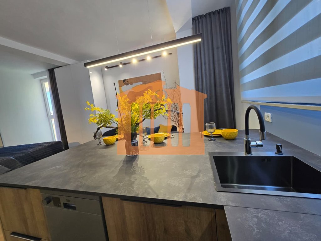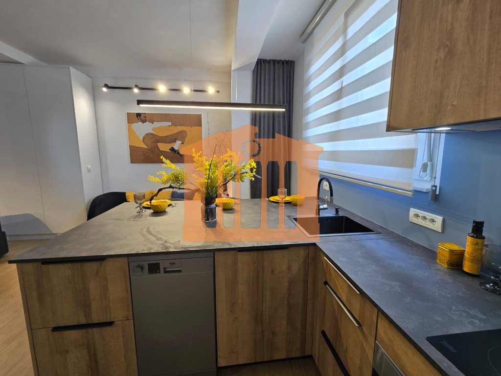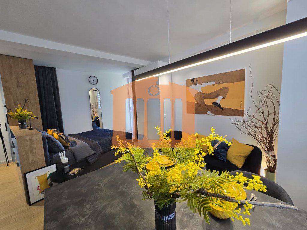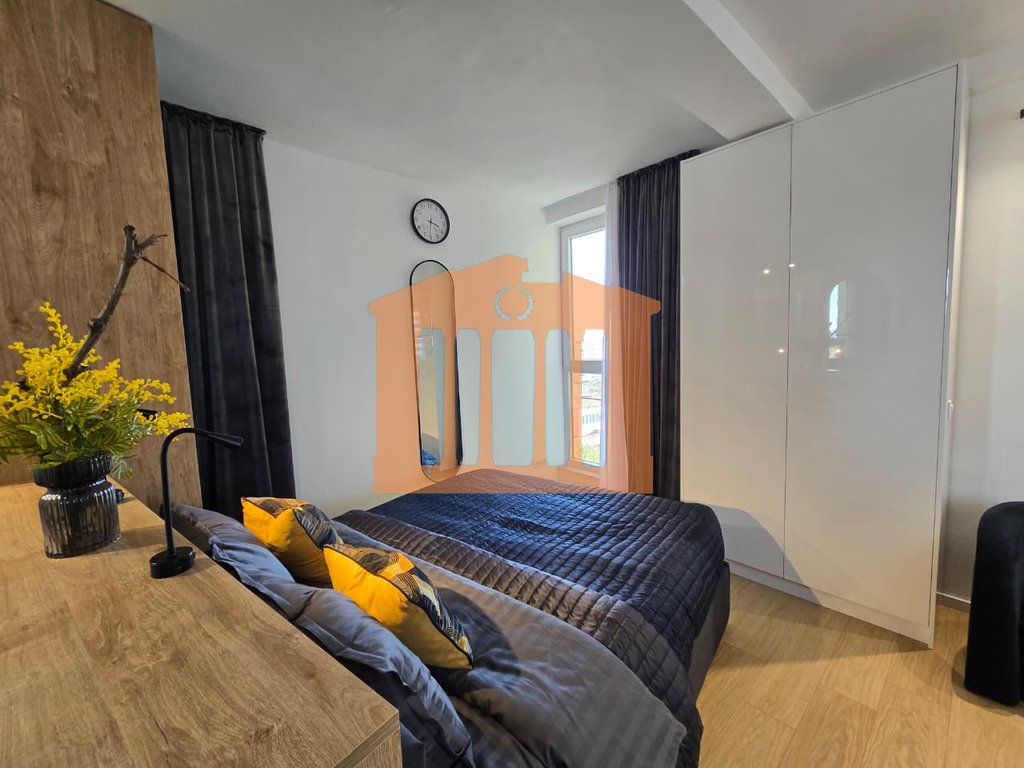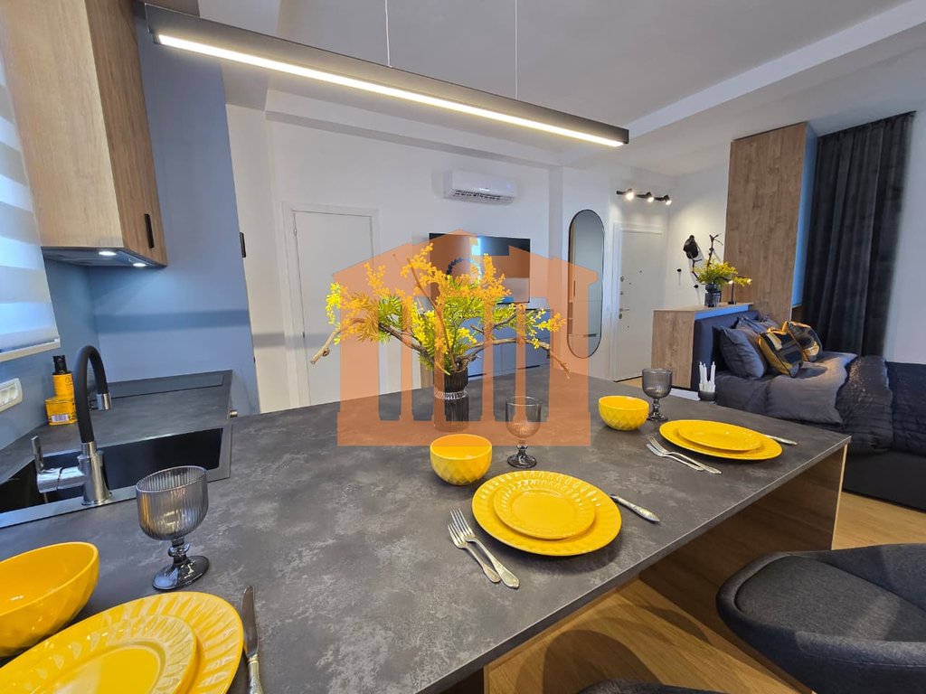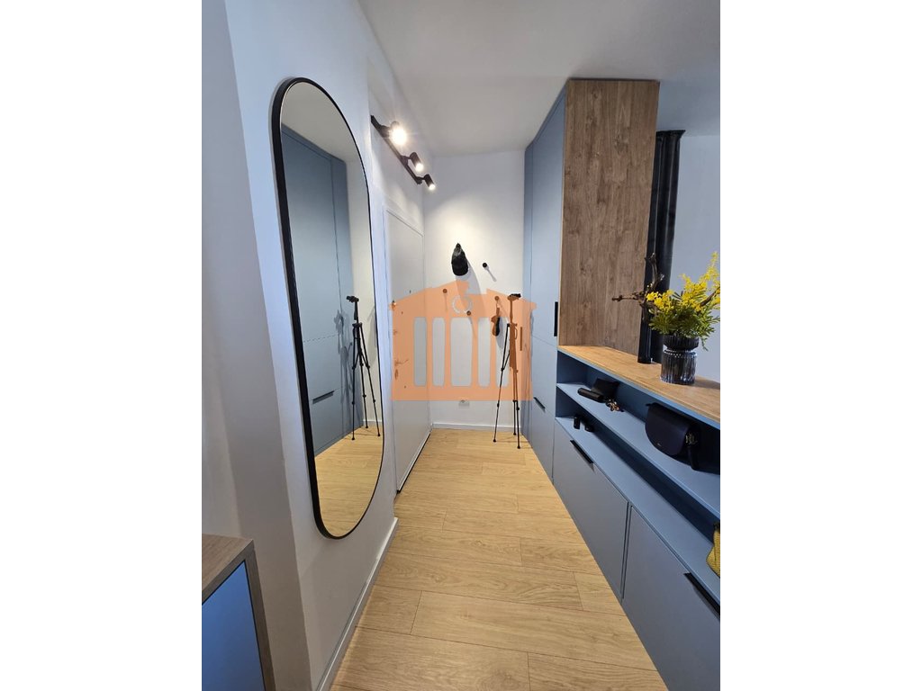 Garsonieria ndodhet ne katin e 9-te te nje pallati te ri me ashensor dhe administrim te rregullt gjate gjithe vitit. Disponon 47m totale dhe 40m te brendshme te cilat organizohen ne open-space dhe 1 tualet. Arredimi eshte bere deri ne detaje dhe kushte bashkohore e cilesore ku eshte shfrytezuar 100% hapesira e saj, duke nisur qe nga punimet elektrike & hidrualike, tualeti totalisht i ri dhe me sistem ngrohes per pllakat per ta bere sa me te ngrohte gjate dimrit, shtrimi me parket, mobilimi dhe kombinimi i ngjyrave ne menyre te persosur, gjithashtu dhe pajisja me pajisjet elektro-shtepiake. Mungon vetem prezenca e pronarit te ri!