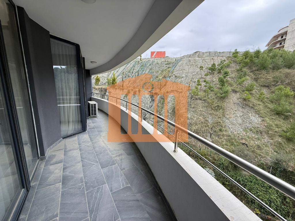 Apartamenti ndodhet ne katin e 3-te te nje pallati te ri me ashensor te ndertuar viteve te fundit. Organizohet nga nje korridor qe ben shperndarjen e ambienteve ne nje dhome ndenje me kuzhine , nje dhome gjumi , nje tualet, nje ballkon dhe nje garazh. Apartamenti eshte i investuar dhe i mobiluar deri ne detaje.. Zona dhe rezidenca ne te cilen ndodhet ky apartament eshte nje vlere e shtuar pasi i ofron te gjitha facilitet e nevojshme per nje jetese te qete dhe komode . Preferohet te jepet per qira afatgjata.