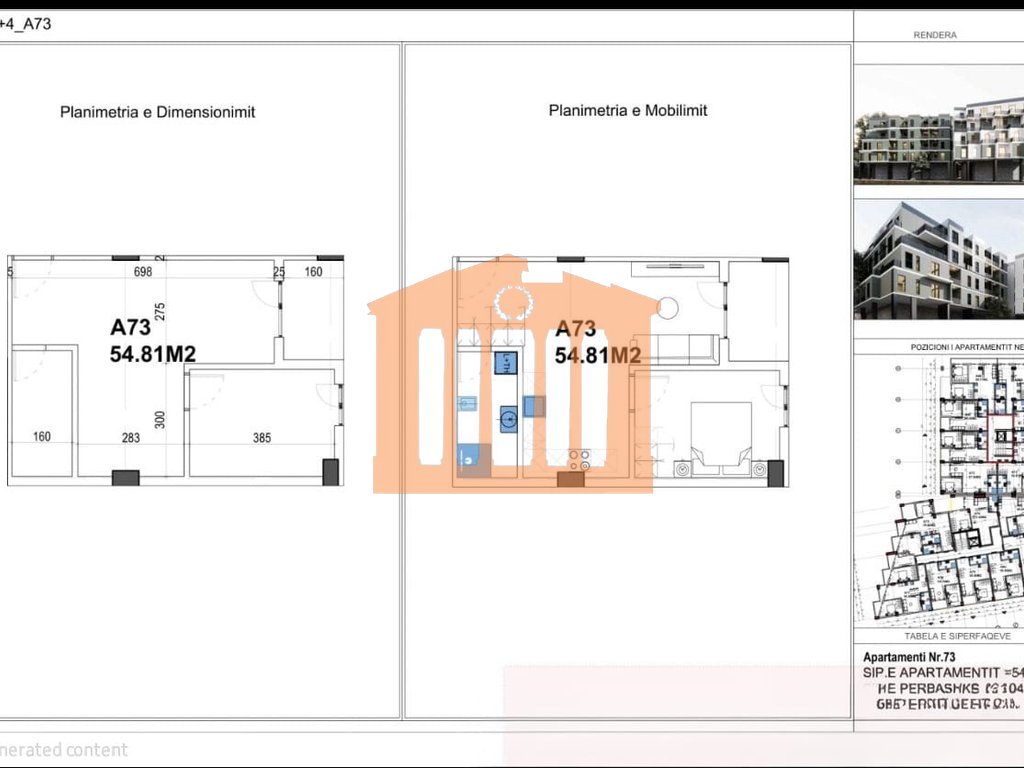 Apartamenti ndodhet ne katin e 4 te nje godine ne procese ndertimi ne Malin e Robit . Apartamenti disponon 62.75 m2 siperfaqe totale nga keto 54.81m2 jane siperfaqe e brendshme te cilat organizohen ne nje dhome ndenje + kuzhine, 1 dhome gjumi, 1 tualet dhe 1 ballkon. Duke punuar me kapacitet te plote pritet qe kjo rezidence te mbaroje ne fund te vitit 2027 . Me nje lokacion teper te favorshem dhe shume prane fasiliteteve te ndryshme e ben kete rezidence jo vetem vend per te kaluar pushimet por gjithashtu edhe per te jetuar per periudhe afatgjate.