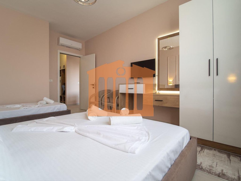 Apartamenti ndodhet ne katin e katert banim me pamje deti ne Golem, Durres. Prona disponon siperfaqe totale 80 m2 dhe organizohet ne nje dhome ndenje se bashku me kuzhinen, nje dhome gjumi, nje tualet dhe nje ballkon, gjithashtu ka dhe parkimi. Prona eshte totalisht e mobiluar me stil modern dhe e paisur me te gjitha komponentet e gatshme per jetese, gjithashtu dyer-dritare te jashtme jane termike me xham duplex per izolim te plote dhe ndicim led qe krijojne atmosfere elegante. Kjo prone ofron nje kombinim perfekt te rehatise, sigurise dhe stilit, i pershtatshem per cifte, famije te vogla apo individe qe kerkojne nje ambient terheqes dhe funksional. Apartamenti jepet me qira afatgjate per nje vlere 40.000 leke ne muaj/neto nje oferte shume konkurruese per standartin qe ofron !