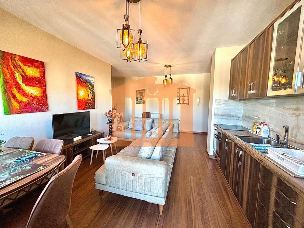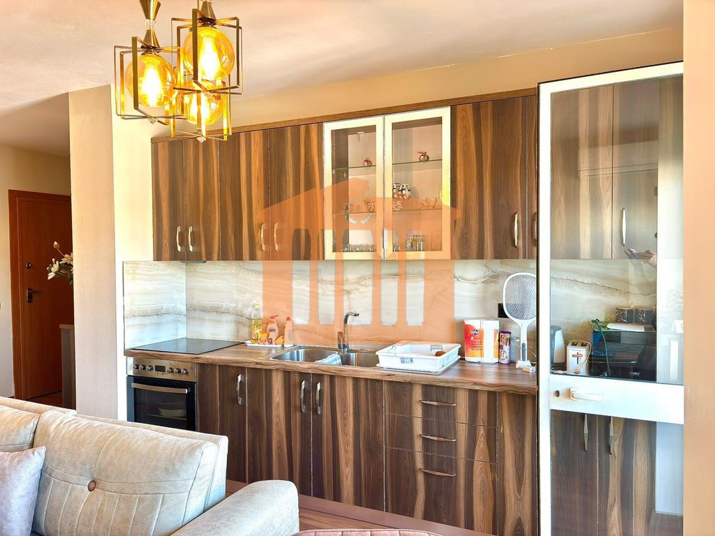 Apartamenti ndodhet ne katin e katert te nje pallati pa ashensor afer Bonites ne Golem. Prona disponon 67.4 m2 te brendshme ne certifikate te cilat organizohen ne nje korridor qe ben shperndarjen e ambienteve ne nje dhome ndenje se bashku me kuzhinen, nje dhome gjumi, nje tualete dhe tre ballkone. Zona ku ndodhet apartamenti eshte nje zone e preferuar per banim dhe per pushime ku ofron te gjitha facilitetet per nje jetese sa me komode. Apartamenti eshte totalisht i mobiluar me kushte bashkekohore dhe eshte e gatshme per t'u dhene me qira afatgjate me nje cmim prej 40,000 leke ne muaj.