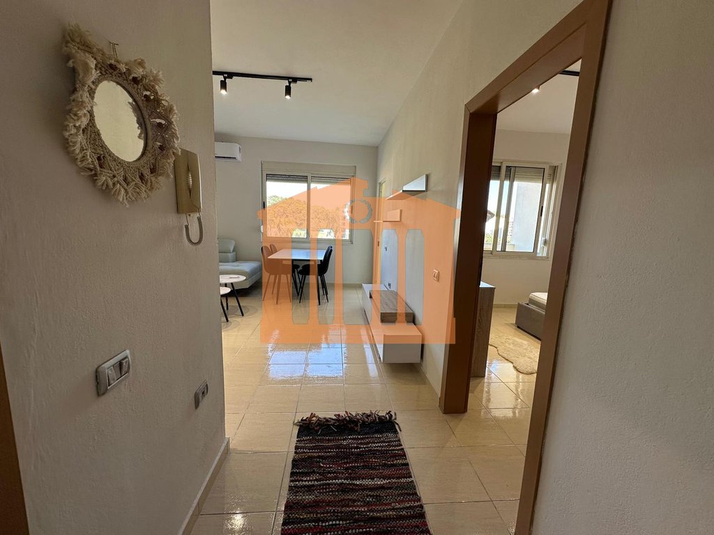 Apartamenti ndodhet ne katin e 5 te nje godine 6 kateshe ne zonen e Malit te robit ne nje mini residence me administrim dhe me parkim per banoret falas. Organizohet nga nje korridor i vogel, 1 dhome ndenje se bashku me kuzhinen, 1 dhome gjumi, 1 ballkon dhe 1 tualet. Apartamenti eshte i investuar se fundmi dhe i mobiluar gati per jetese. Prona disponon 61m2 te brendshme ne certifikate ose 67m2 totale dhe gjithashtu ka te perfshire edhe nje vend parkimi falas brenda residences. Zona ne te cilen ndodhet prona eshte nje zone e njohur per pushime e rrethuar me pisha dhe jo me larg se 400 m nga deti Adriatik.