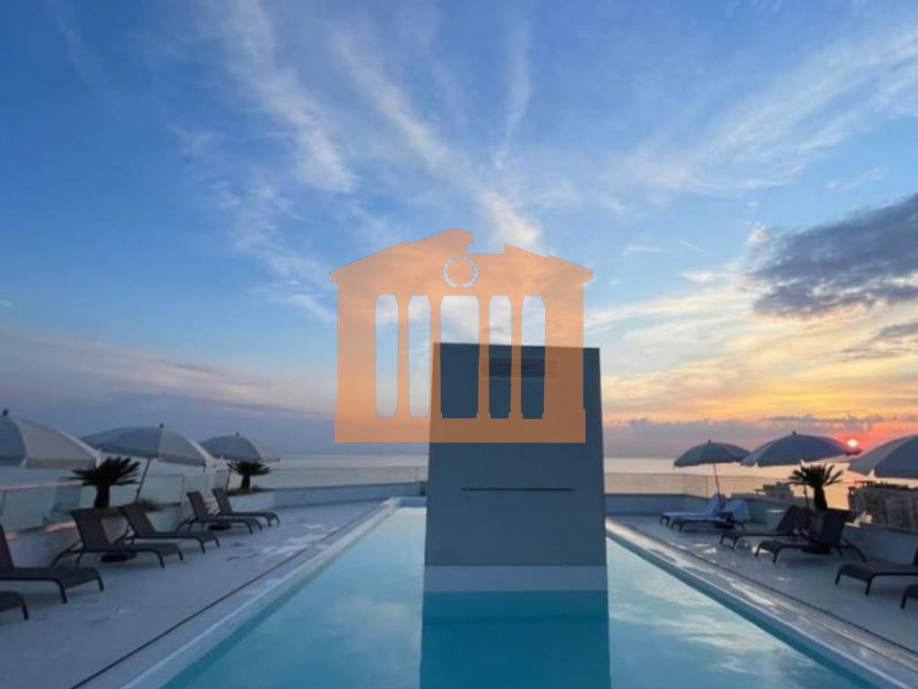 Prona disponon 800 m2 siperfaqe totale, 484m2 eshte pjesa e apartamenteve, 347m2 eshte pjesa e verandes e cila ka edhe nje pishine me pamje deti.