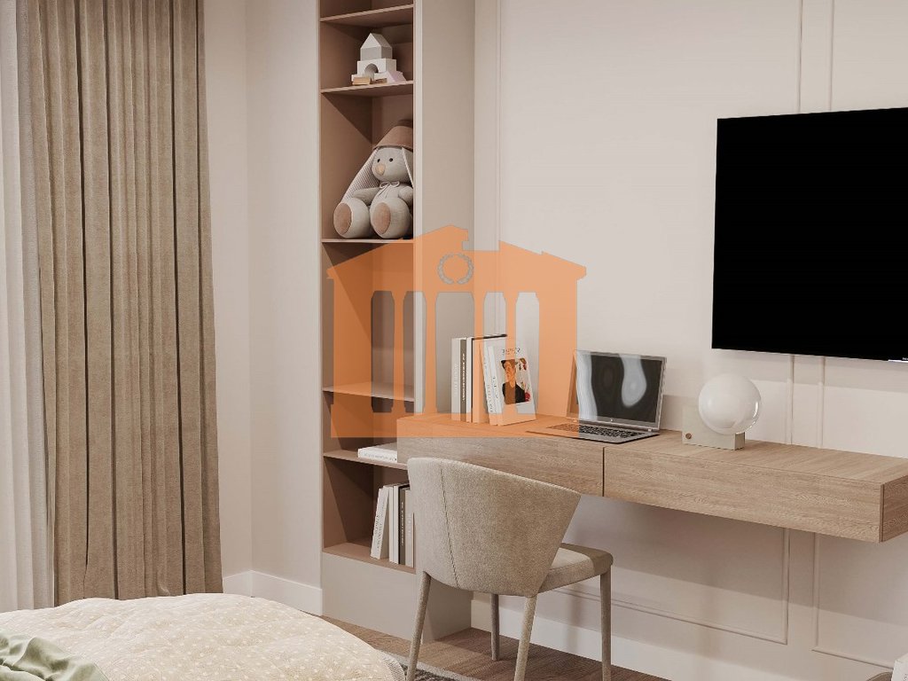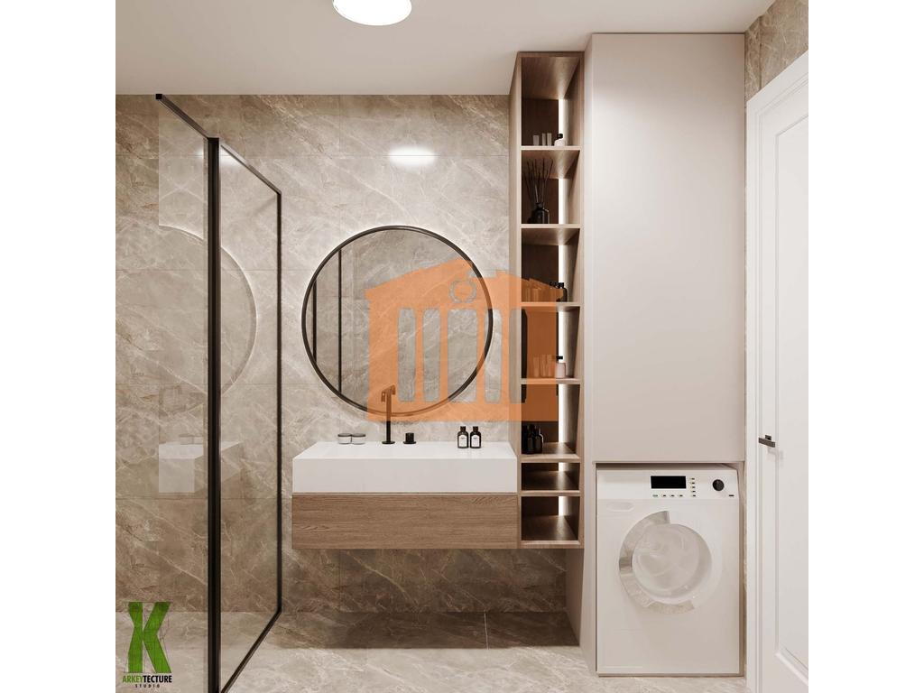 Interieri ofron një stil bashkëkohor, me mobilim dhe detaje të përzgjedhura me kujdes, që krijojnë një ambient të ngrohtë dhe elegant.