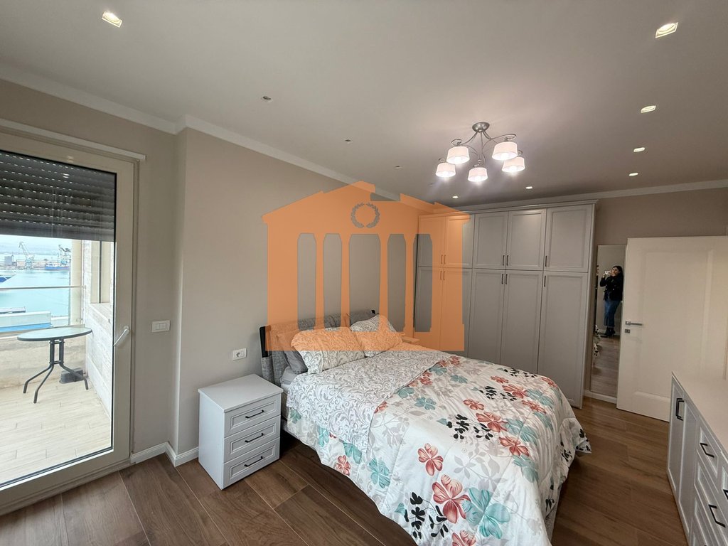 Apartamenti ndodhet ne Rrugen e Portit, katin e 7-te te nje pallati te ri me ashensor te ndertuar viteve te fundit . Organizohet nga nje korridor qe ben shperndarjen e ambienteve ne nje dhome ndenje me kuzhine disi te vecuar , dy dhoma gjumi , nje tualet dhe dy ballkone me pamje nga porti. Apartamenti eshte i investuar dhe i mobiluar deri ne detaje. Zona dhe pallati ne te cilin ndodhet ky apartament eshte nje vlere e shtuar pasi i ofron te gjitha facilitet e nevojshme per nje jetese te qete dhe komode . Preferohet te jepet per qira afatgjata.