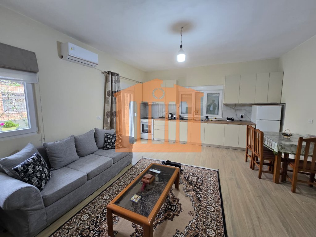 Apartamenti ndodhet ne katin e pare te nje vile ne zonen e Plazhit Hekurudha prane me Posten. Organizohet ne nje dhome ndenje + kuzhine, 1 dhome gjumi dhe 1 tualet me dritare. Apartamenti eshte totalisht i arreduar ku pranohen edhe kafshe shtepiake. Jepet me qira afatgjate per nje vlere 300 euro/muaj.