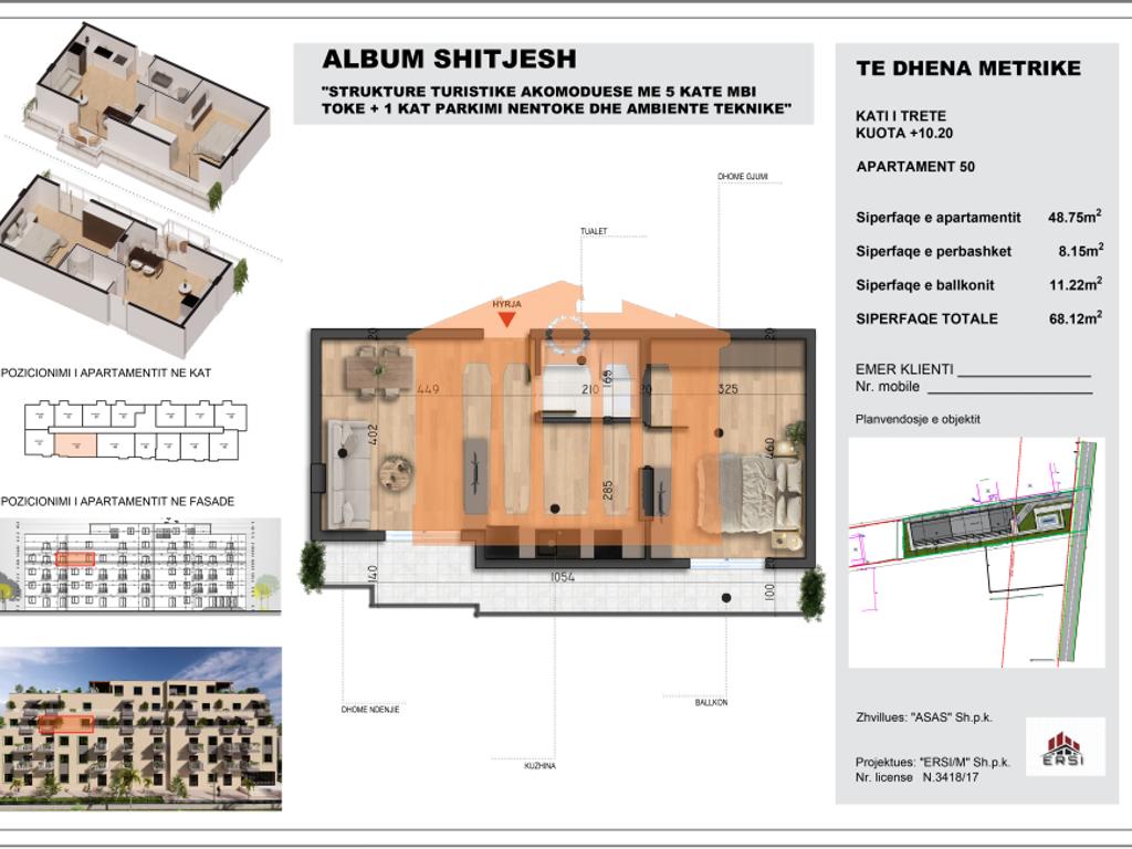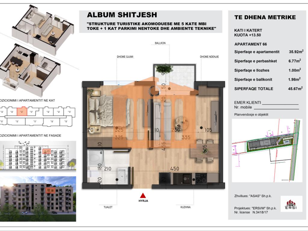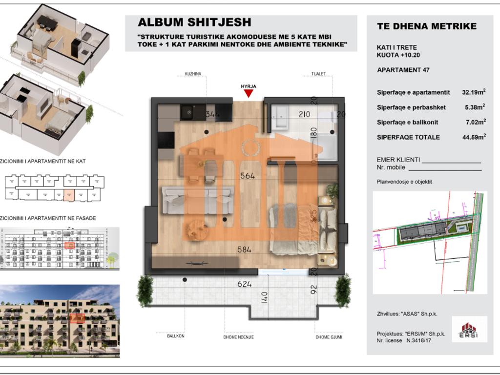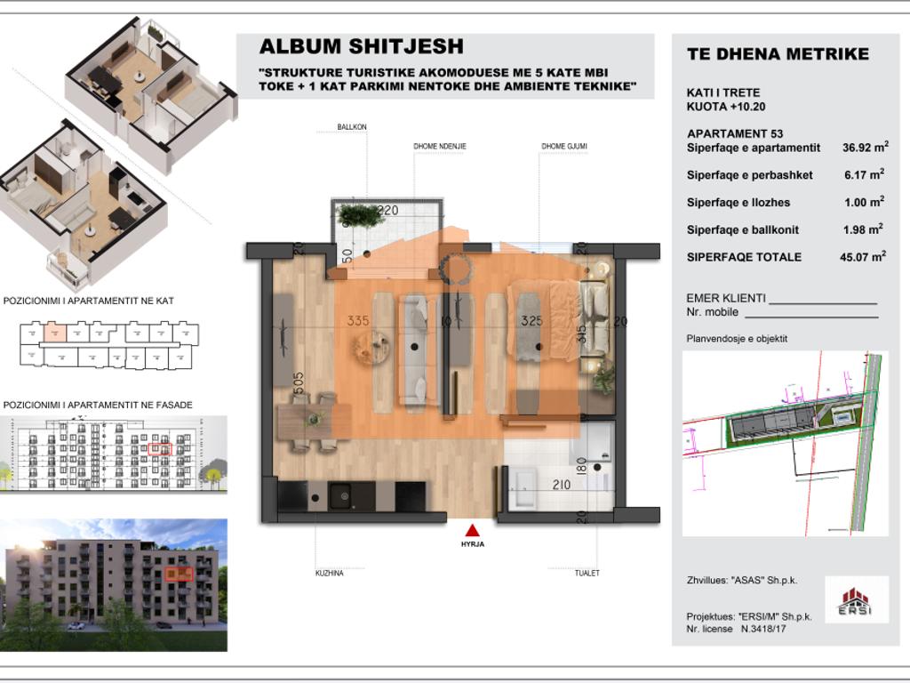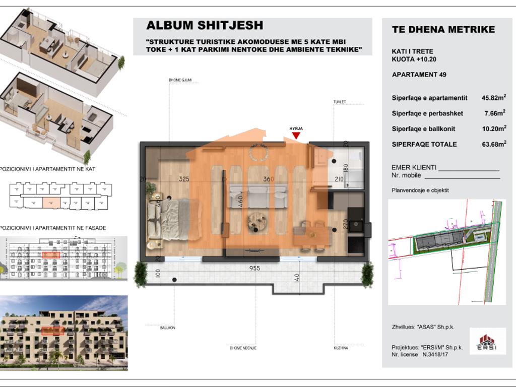 Квартиры находятся в пятиэтажном здании, находящемся на стадии строительства в районе Голем, Дуррес. Мы предлагаем варианты студий, которые варьируются от 35,39 м2 до 49,11 м2 общей площади, на 3 и 4 этажах здания. Также у нас есть варианты квартир 1+1 с разными планировками, которые варьируются от 45,07 м2 до 68,12 м2 общей площади, на этажах 0,1,2,3 и 4. Строительство запланировано на 2025 год, срок завершения – через 18 месяцев. В этом объекте предлагается возможность оплаты в рассрочку. Способ оплаты: 30%, 30%, 30% каждые 6 месяцев и 10% при получении ключей от квартиры. Цена за м2 составляет 1200 евро. При полной оплате цена за м2 составляет 1050 евро. Очень выгодное расположение делает эту резиденцию подходящей не только для отдыха, но и для проживания.