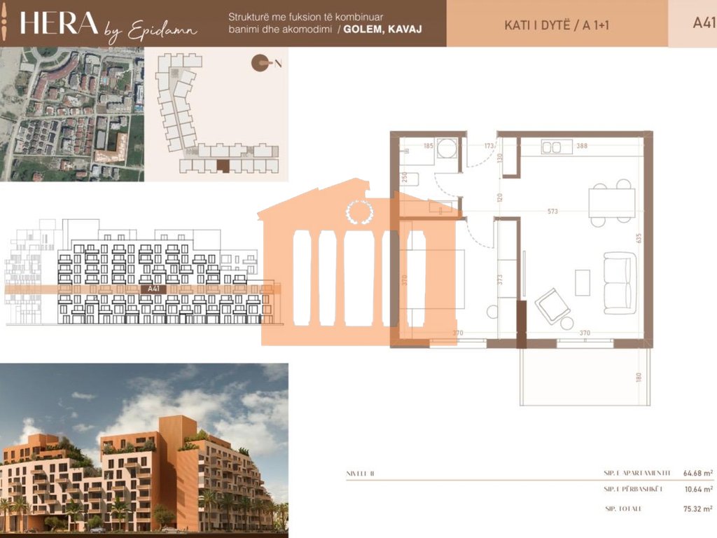 Квартира находится в 150 м от моря, на втором этаже нового здания с лифтом, которое (еще строится) в резиденции "Hera" в Големе. Квартира имеет общую площадь 75,32 м2, из которых 64,68 м2 — внутренняя площадь, включающая гостиную с кухней, одну спальню, одну ванную комнату и балкон. Построена в 2025 году, завершение строительства запланировано к концу 2026 года. Район, в котором расположена эта квартира, предлагает все удобства и подходит как для проживания, так и для отдыха, а также для инвестиций, поскольку Голем уже стал очень востребованным и предпочитаемым районом. Способ оплаты: 95% при подписании контракта и 5% при передаче ключей от квартиры. В данном объекте предусмотрена возможность оплаты в рассрочку: 50% при подписании контракта, 25% в феврале 2026 года, 20% в июне 2026 года и 5% при передаче ключей от квартиры. Для получения дополнительной информации или для организации просмотра недвижимости, пожалуйста, свяжитесь с нами!